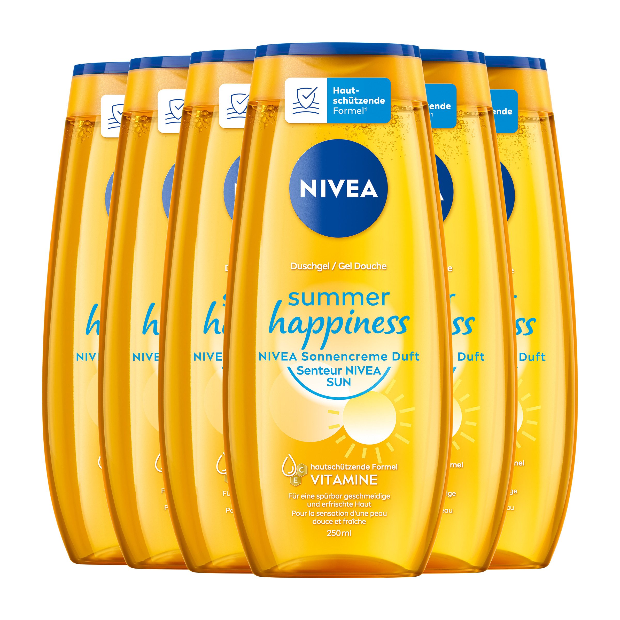 Lieferumfang | NIVEA Pflegedusche Summer Happiness Duschgel Sonnenduft Vitamin C & E 6 x 250 ml |