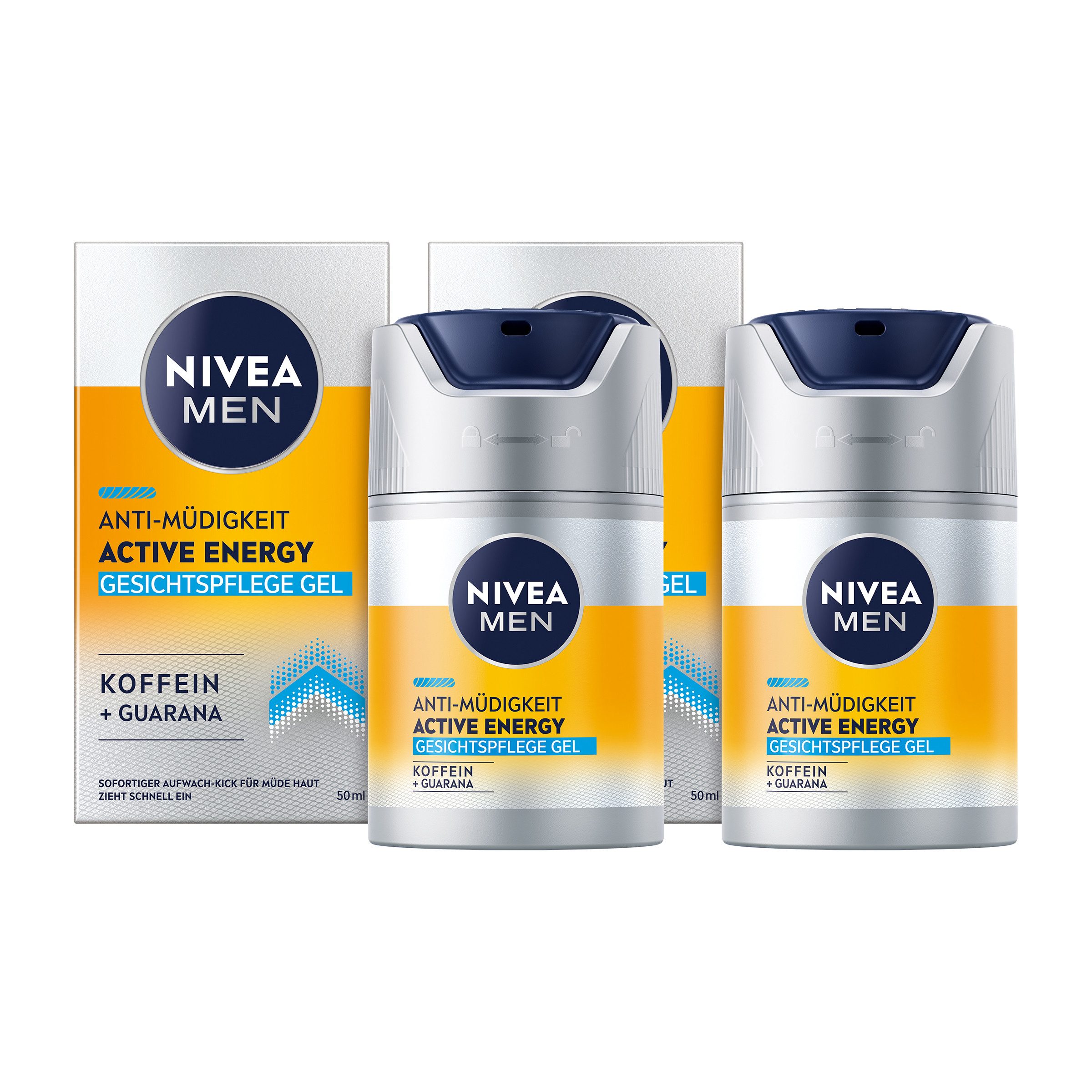 Lieferumfang | 2x NIVEA MEN Active Energy Gesichtspflege Gel Anti-Müdigkeit Koffein Guarana 50ml |