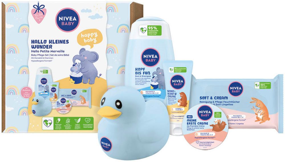 Anwendung | Befeuchte Haut & Haare deines Babys und verteile sanft eine kleine Menge Gel auf Haut & Köpfchen. Im Anschluss abspülen. Säubere die Haut und den Windelbereich deines Babys sanft mit einem Feuchttuch. Trage sanft eine kleine Menge Wundschutzcreme auf gerötete Stellen oder während des Windelwechselns auf. Lagerung: Produkt bei unter 30 °C lagern. Hinweis: Aufgrund der natürlichen Beschaffenheit des Produktes kann sich vor der ersten Verwendung etwas Öl abgesondert haben. Massiere liebevoll eine kleine Menge Creme auf Gesicht & Körper ein und pflege damit sanft die zarte Haut deines Babys. |