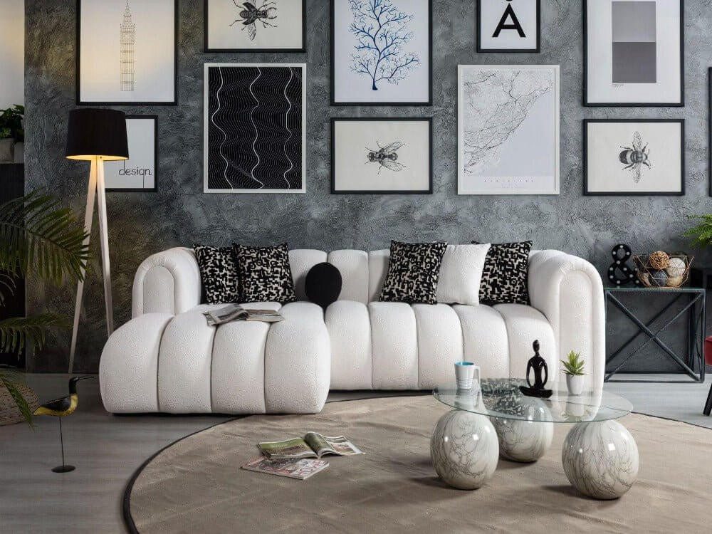 Unser Ecksofa ist die perfekte Ergänzung für jedes Wohnzimmer, das sowohl Komfort als auch Eleganz vereint.