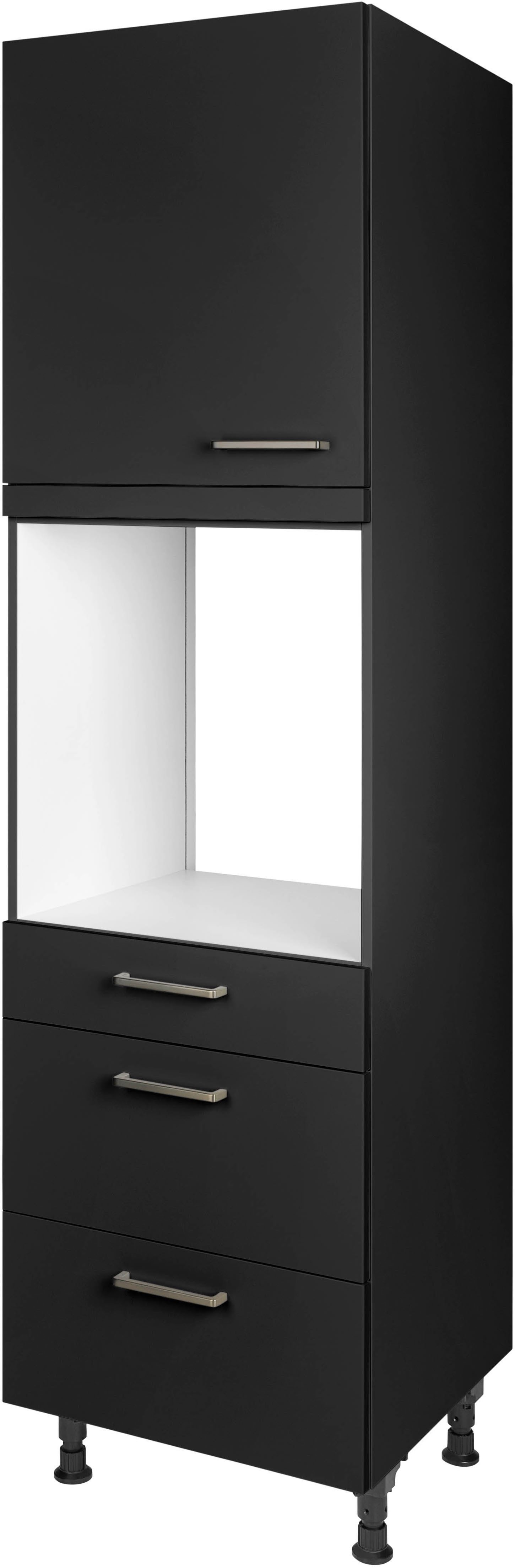 Dieser Backofenumbauschrank »"Touch", Ausrichtung wählbar, mit Schublade und zwei Auszügen und« von nobilia® umrahmt deinen Backofen passend zu deinem Küchendesign. Die Schubladen lassen sich komplett ausziehen und bieten dir weitere Unterbringungsmöglichkeiten. Mit den höhenverstellbaren Füßen kannst du die Schrankhöhe flexibel anpassen, um sie beispielsweise anderen Möbeln anzugleichen. Die praktischen Bügelgriffe aus Metall sind langlebig und unterstreichen den Stil.