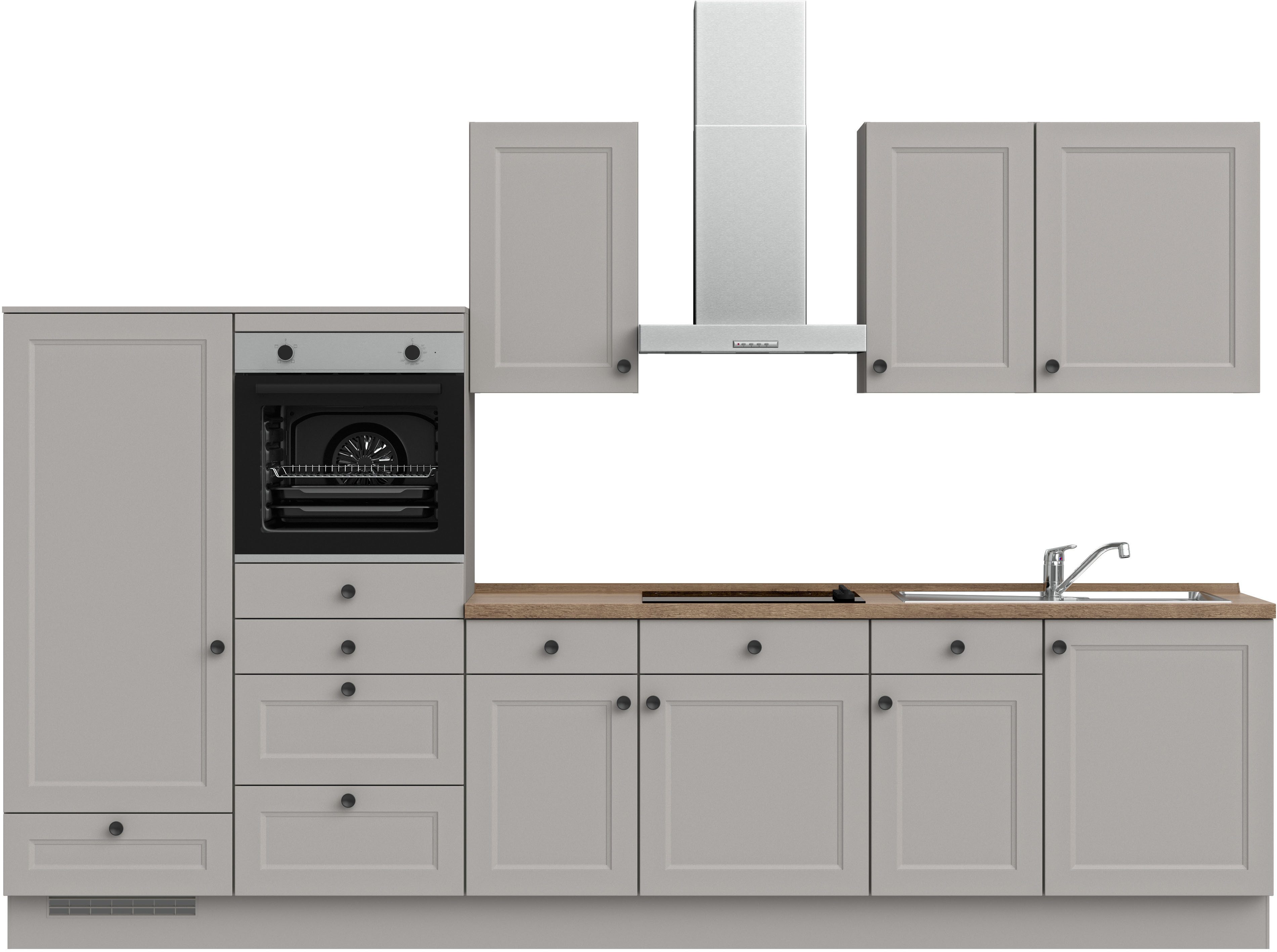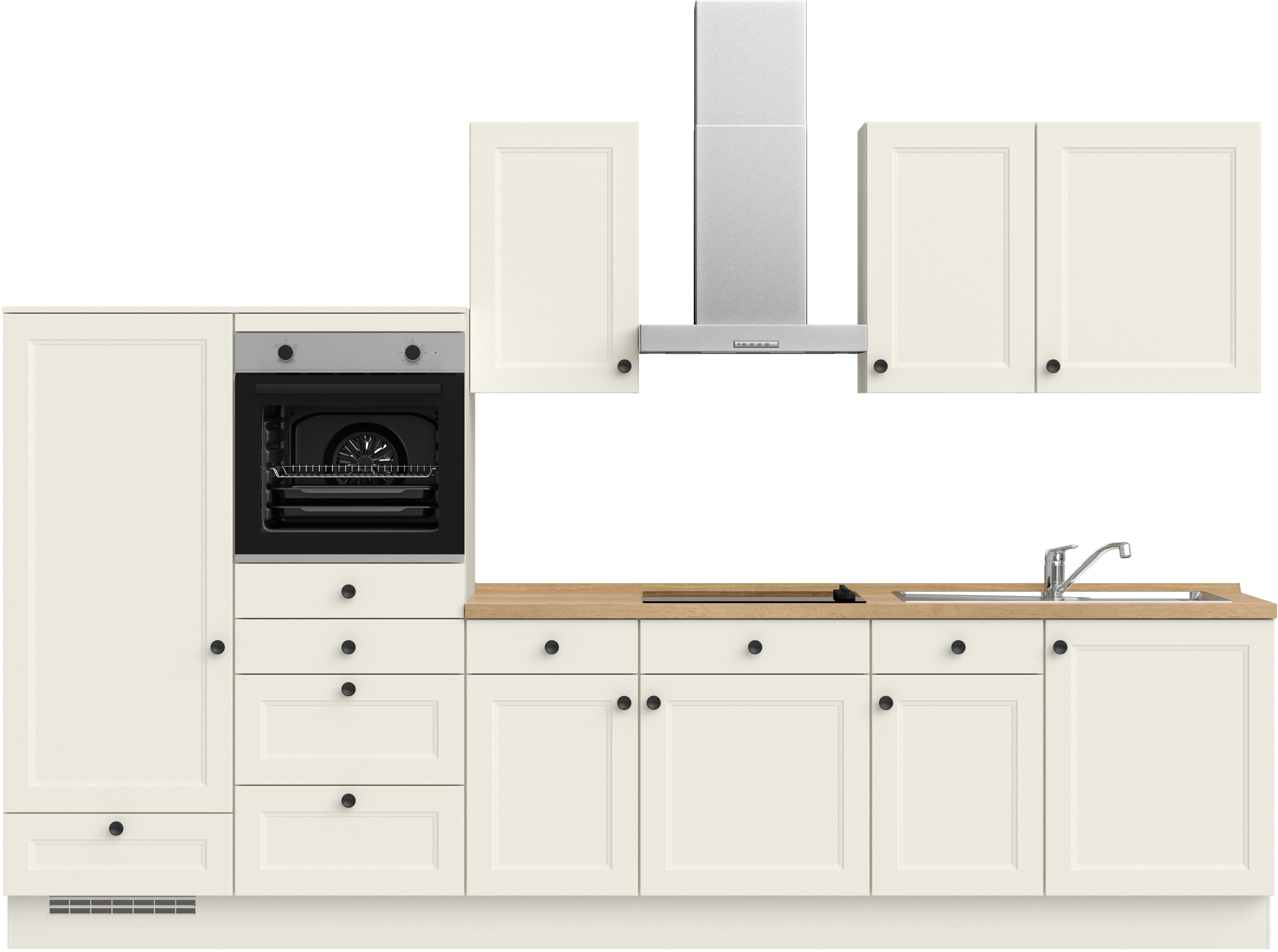 Ausstattung | Durchgehende Arbeitsplatte Einlegeböden höhenverstellbar Schubkästen mit Soft-Close-Funktion Türen mit Soft-Close-Funktion Wandabschlussleiste |