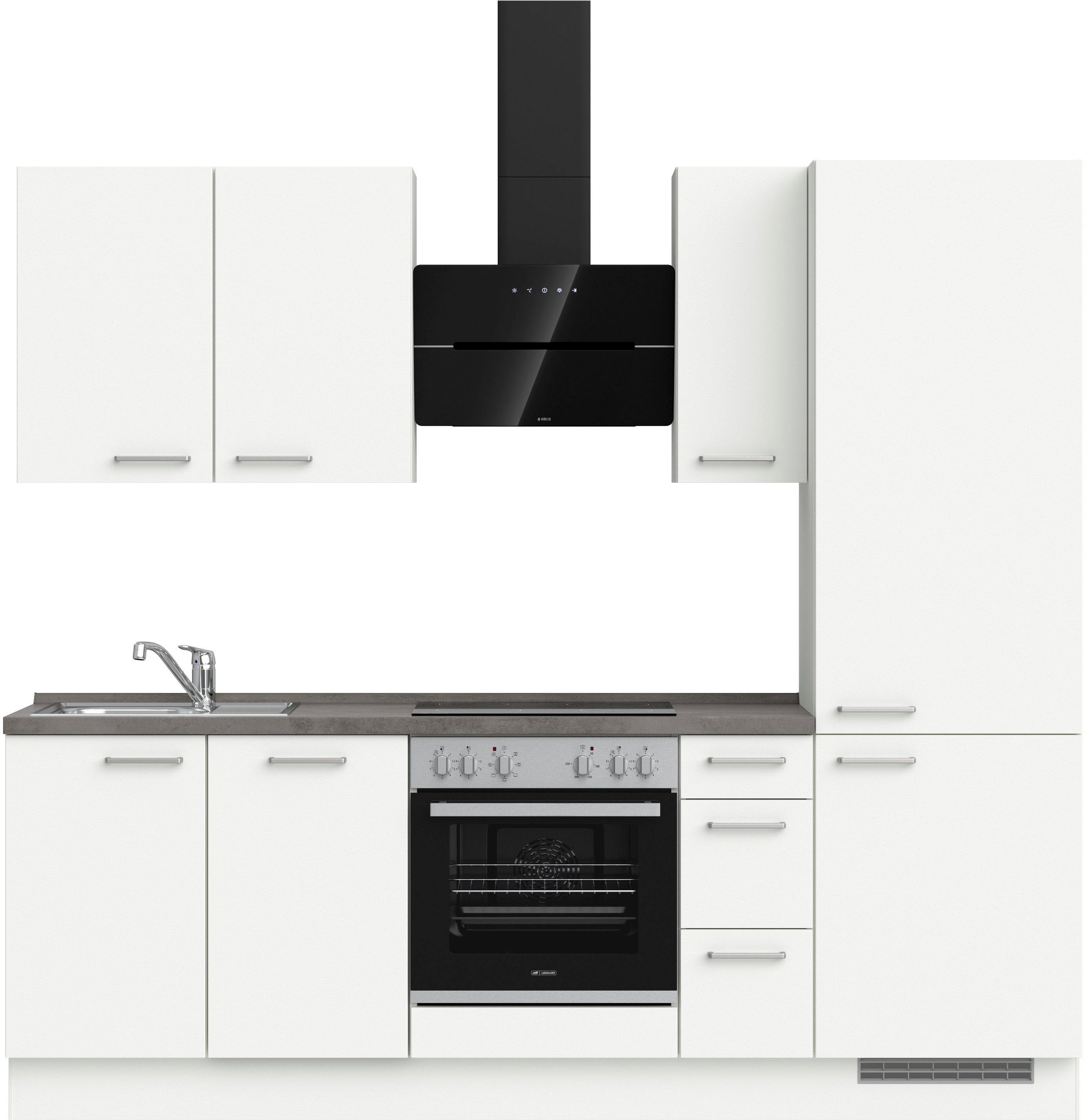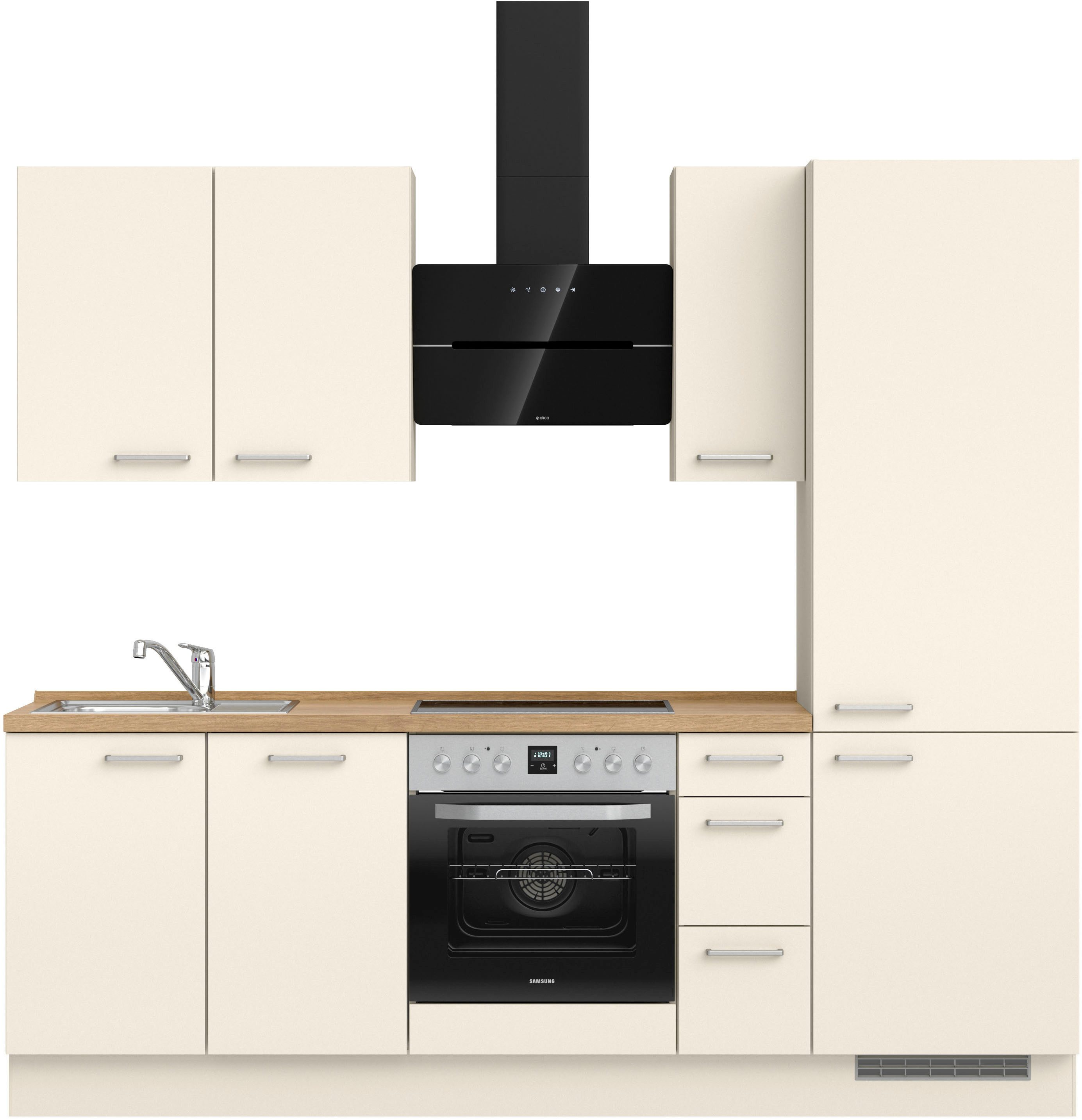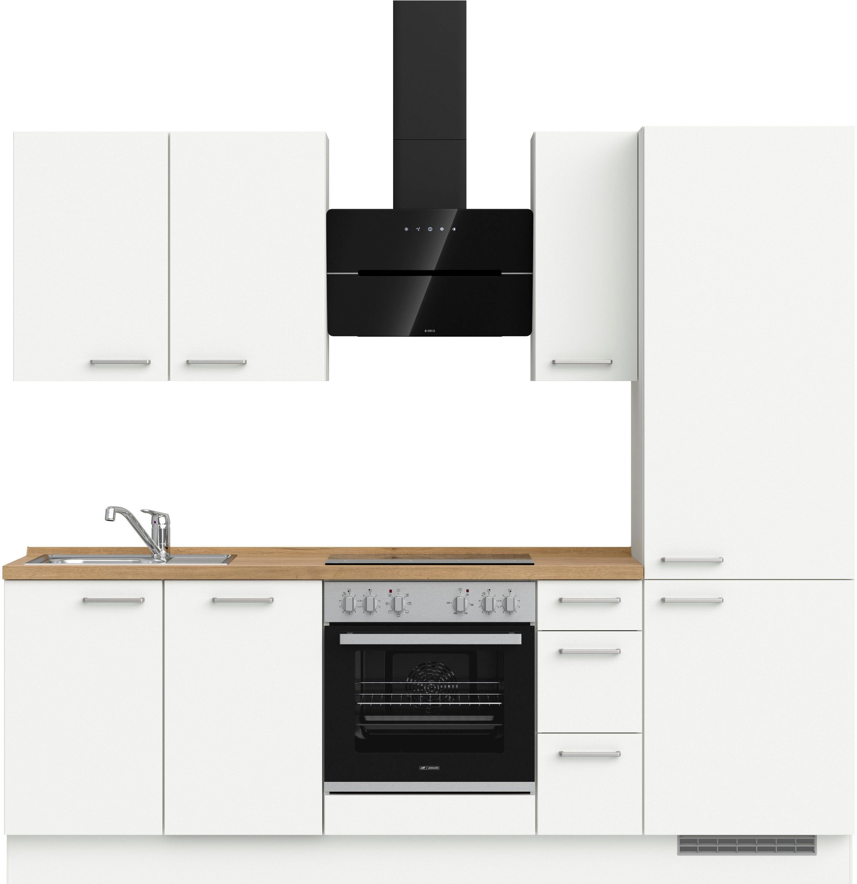 Ausstattung | Durchgehende Arbeitsplatte Einlegeböden höhenverstellbar Metallgriffe Schubkästen mit Soft-Close-Funktion Türen mit Soft-Close-Funktion Wandabschlussleiste |