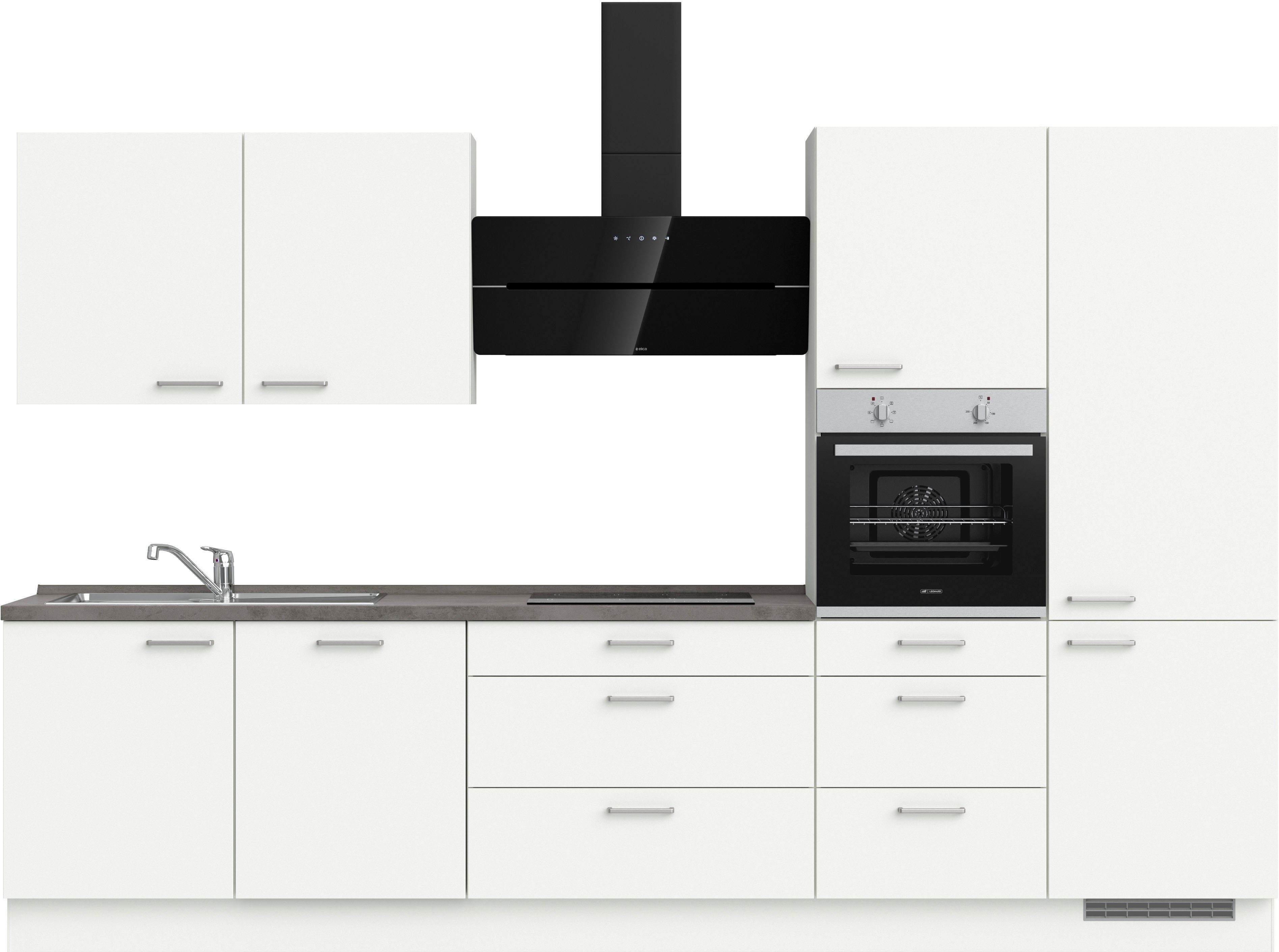 Ausstattung | Durchgehende Arbeitsplatte Einlegeböden höhenverstellbar Schubkästen mit Soft-Close-Funktion Türen mit Soft-Close-Funktion Wandabschlussleiste |