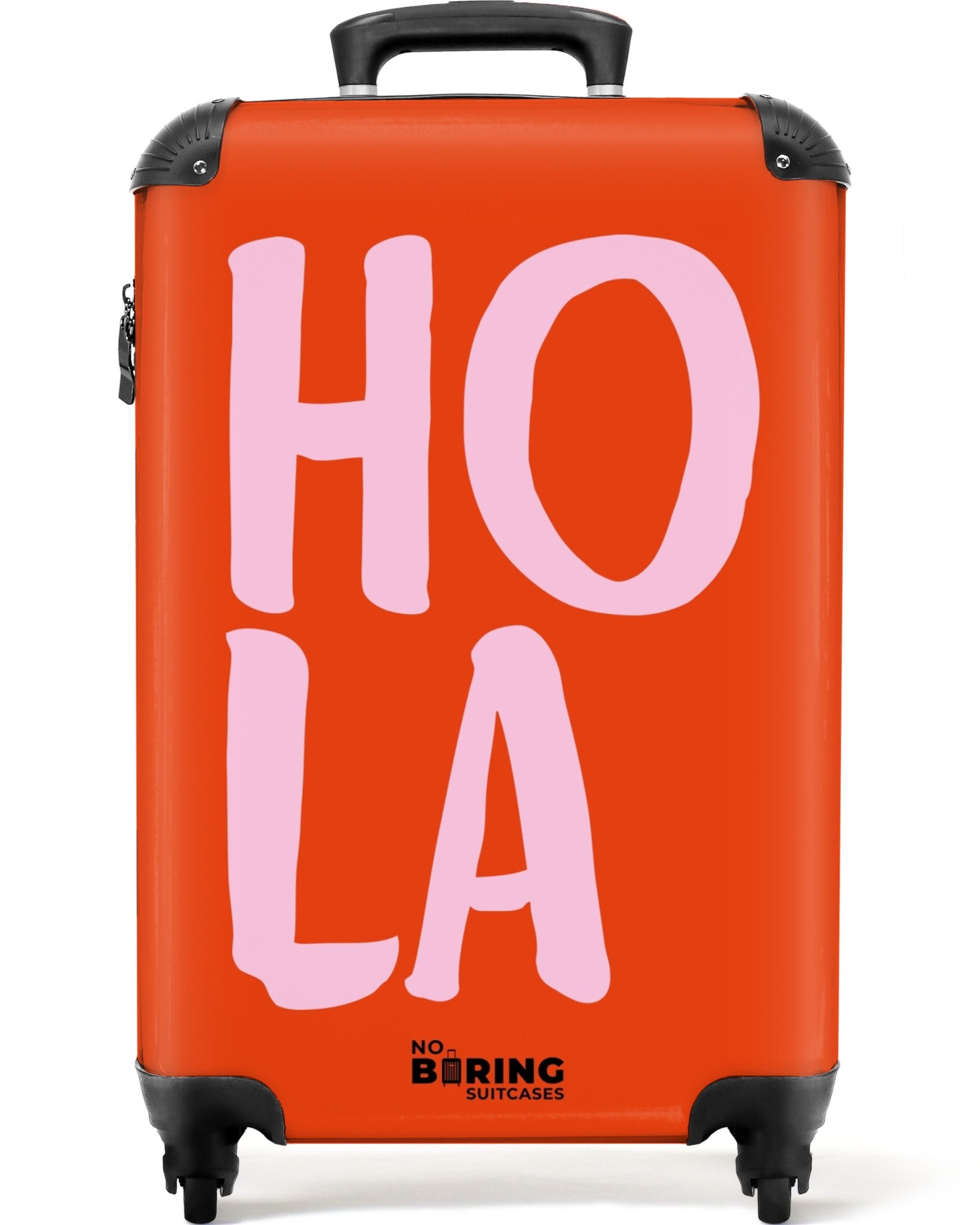 Ein roter Hintergrund mit einem rosafarbenen Zitat 'hola'Optik | bedruckt |