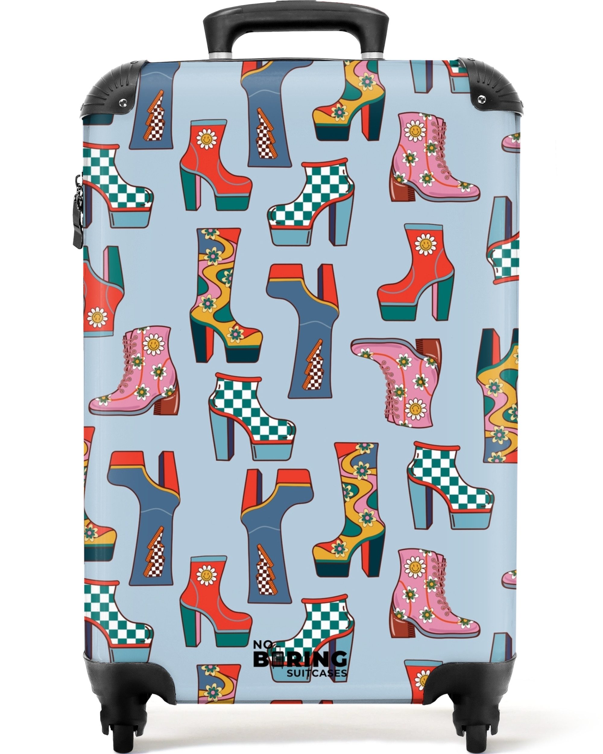 Das lustige Motiv dieses farbenfrohen Koffers wird in gestochen scharfer Premiumqualität gedruckt und stellt sicher, dass Du Deinen Koffer nie wieder an der Gepäckausgabe übersehen wirst. Zusätzlich bringt Dich das fröhlich bunte Design garantiert in Urlaubsstimmung! Deinen tristen Koffer kannst Du ab jetzt getrost zuhause lassen - dieser trendige Trolley ist das ultimative Gepäckstück und ein absoluter Hingucker für alle Reisen.