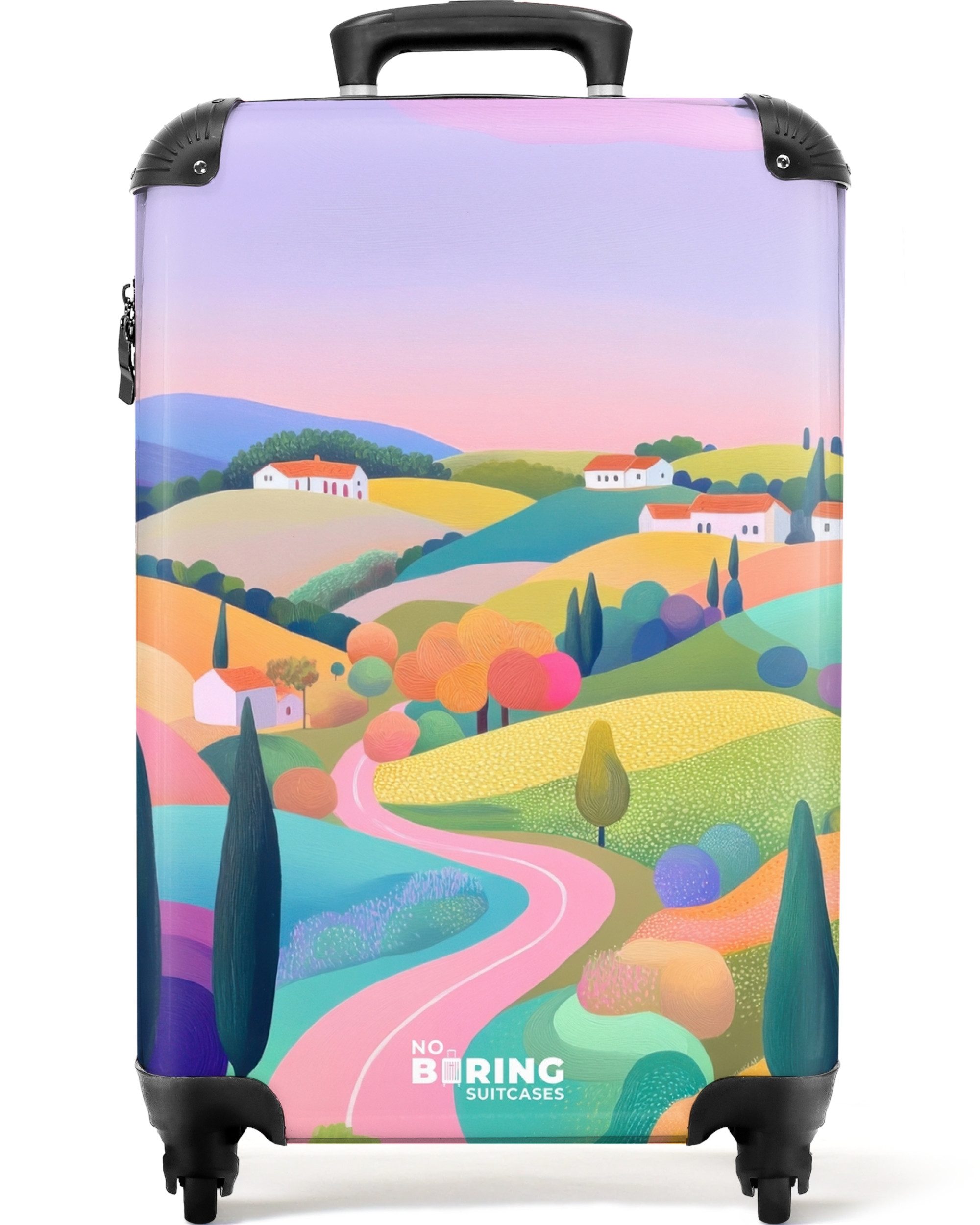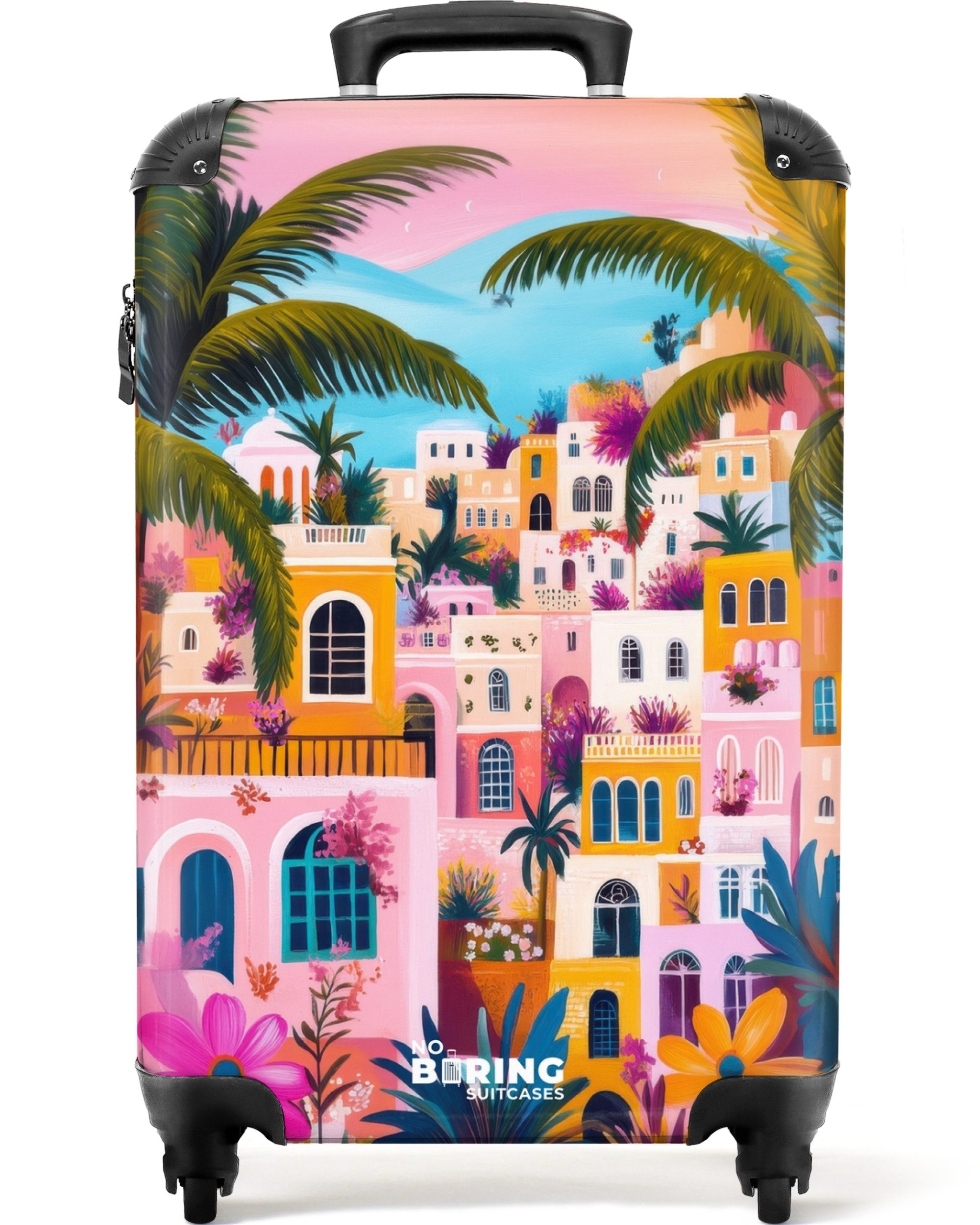 Das robuste Gehäuse des Hartschalenkoffers überzeugt durch einen UV-beständigen Druck in brillanter Farbqualität auf der Vorderseite. Die gerippte Struktur auf der Rückseite gibt dem Koffer mehr Stabilität und eine verbesserte Strapazierfähigkeit. Die moderne Hochglanzoberfläche besteht aus hochwertigem ABS-Material mit einer kratzfesten Beschichtung aus Polycarbonat und sorgt so dafür, dass Du noch viele Urlaubsziele mit Deinem neuen Lieblingskoffer bereisen kannst. Dank der vier wendigen Rollen und dem verstellbaren Teleskopgriff ist dieser Trolley ein solider und komfortabler Begleiter für jede Reisesituation. Das integrierte TSA-Zahlenschloss ist einfach zu bedienen und bietet dennoch zuverlässigen Schutz für Deine persönlichen Habseligkeiten.