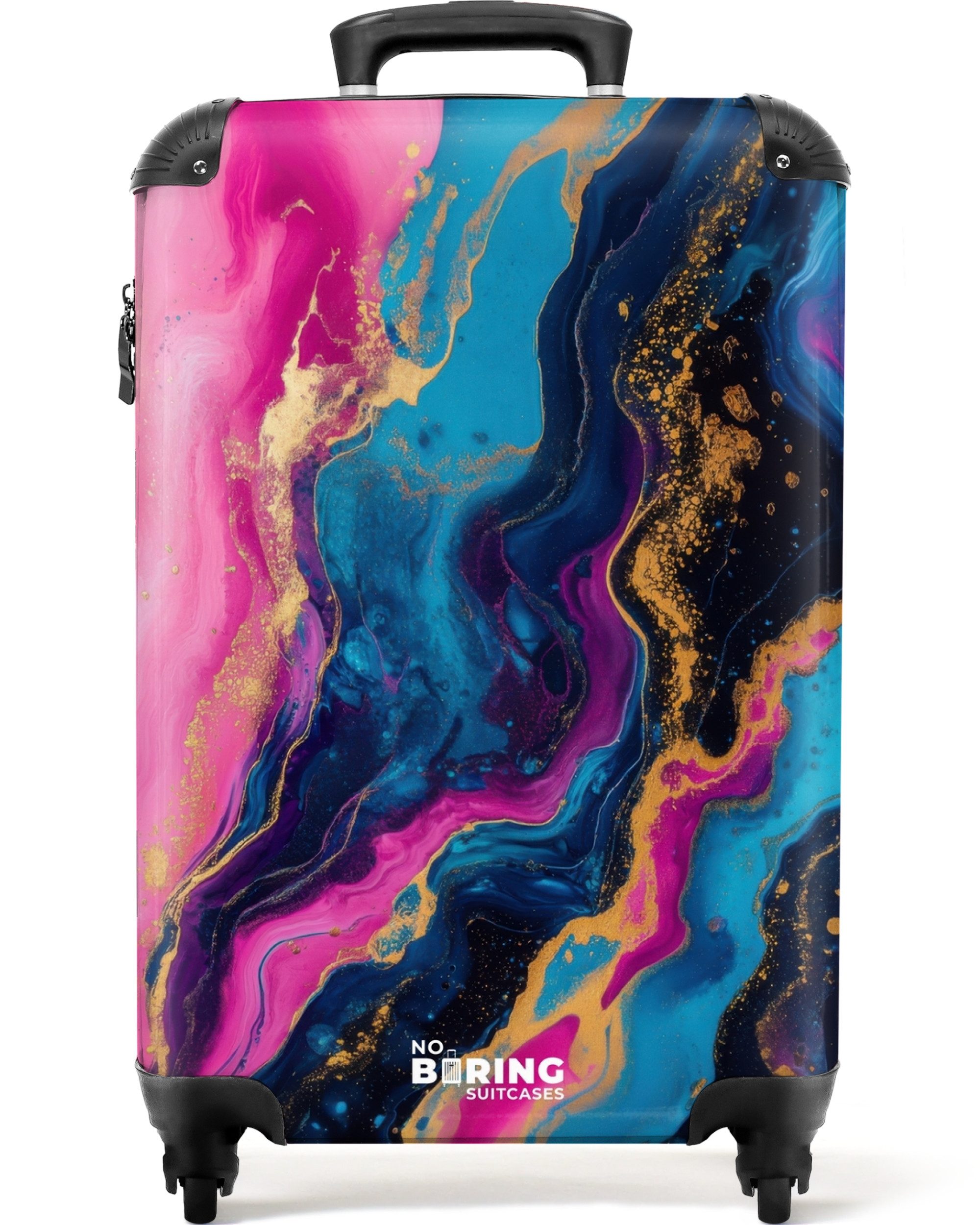 Rosa, Blau und Gold verschmelzen in flüssigen Formen vor einem dunklen Hintergrund. Die Textur erinnert an Marmor oder Tinte.Optik | bedruckt |