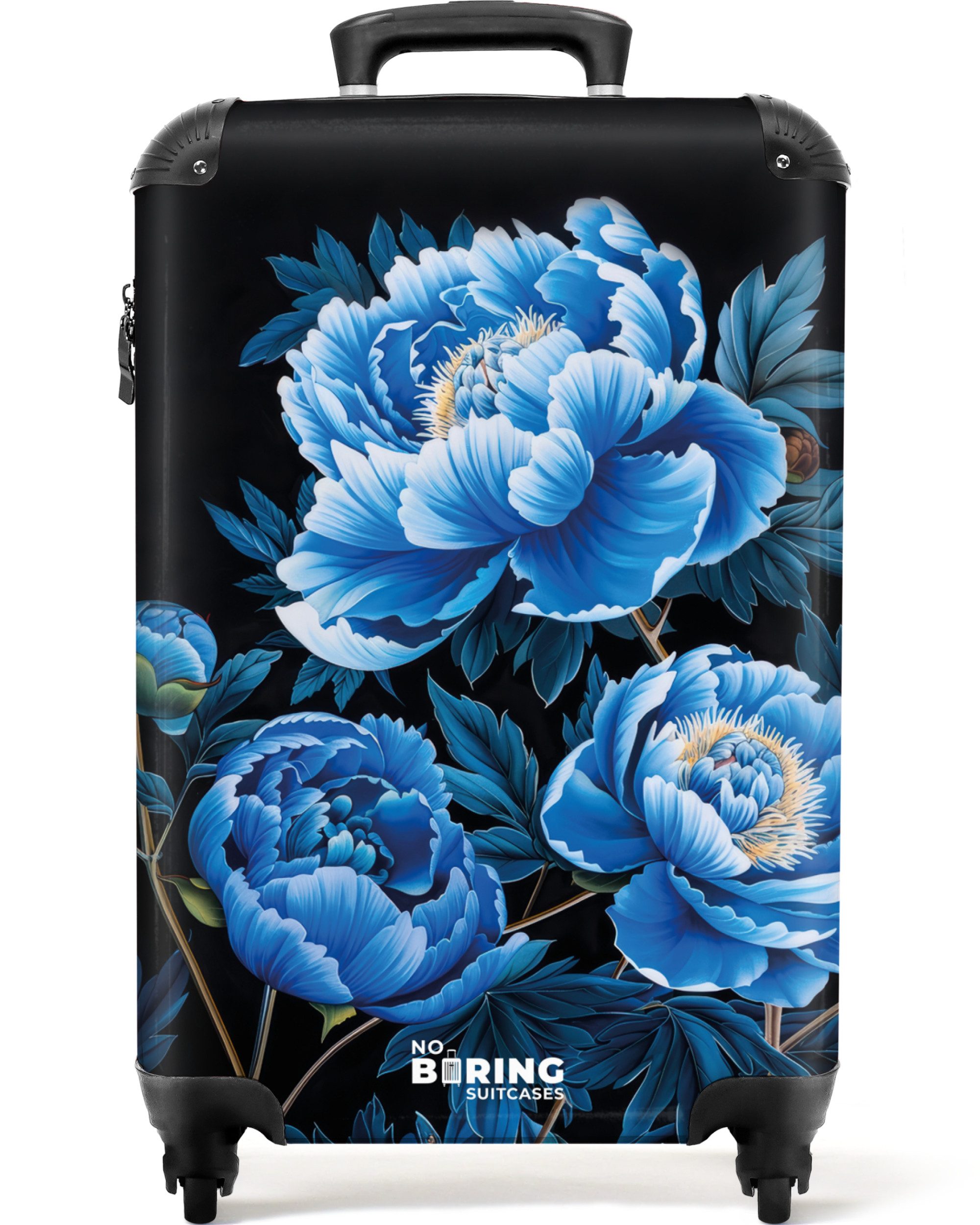 Einige blaue Pfingstrosen auf schwarzem HintergrundOptik | bedruckt |