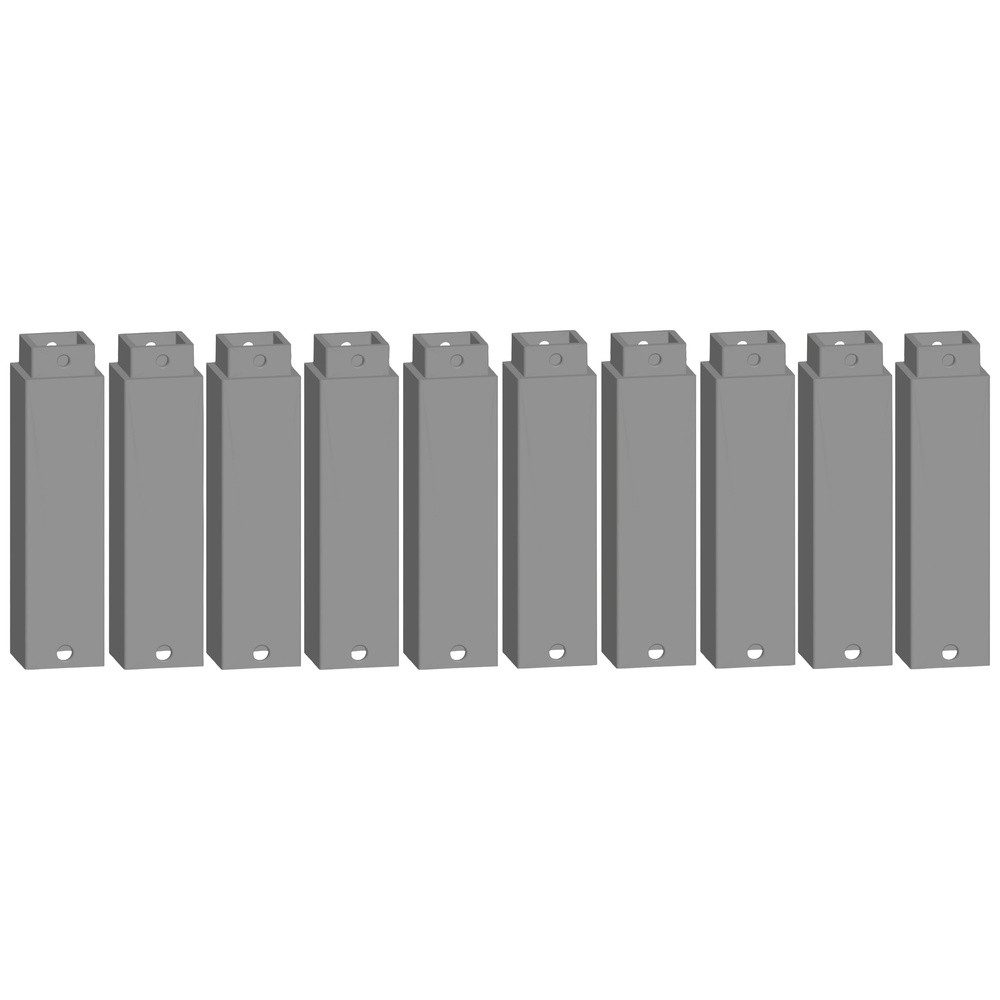Mit diesem Set an Pfeilerelementen erhalten Sie hohe Pfeiler in einem bereits bewährten Maß, die Sie ganz einfach auf Ihrer individuellen Modellbahnanlage einbauen können. Die Pfeiler werden lediglich auf die bereits auf die Grundplatte aufgeschaubten Bodenplatten gesteckt. Wahlweise können diese verschraubt oder verklebt werden.