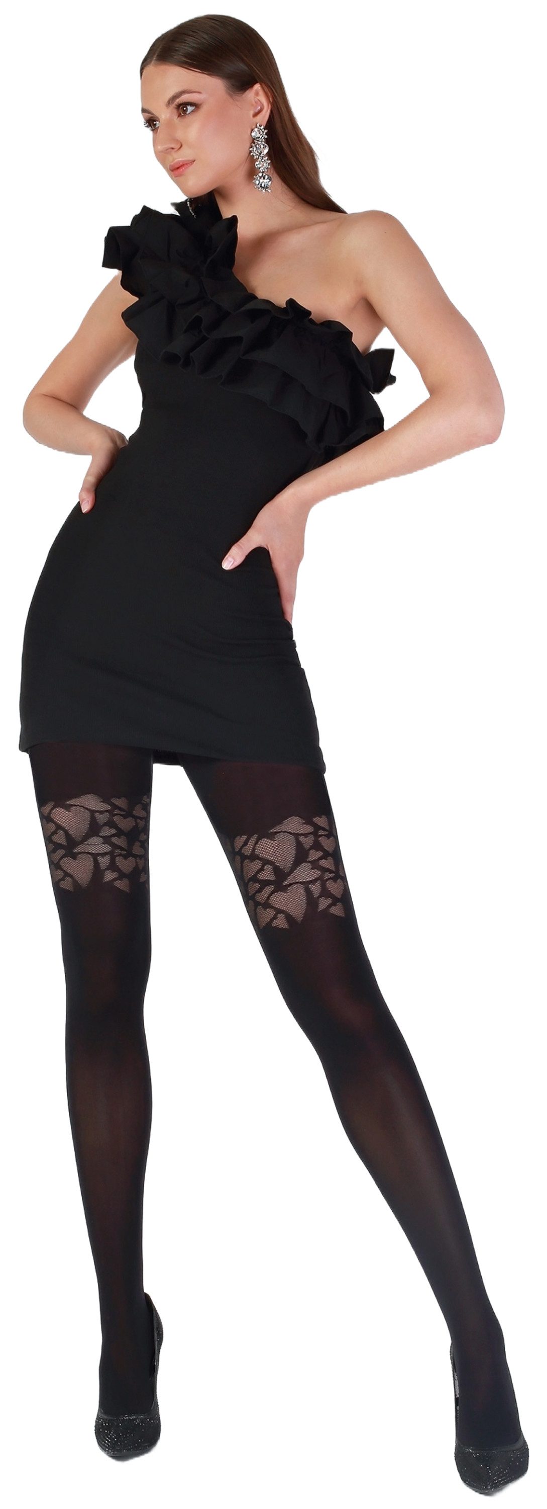 Diese Strumpfhose ist ein subtiler, aber wirkungsvoller Ausdruck deiner sinnlichen Persönlichkeit. Tagsüber präsentiert sie sich als klassische, schlichte und wärmende Strumpfhose, perfekt für stilvolle Eleganz im Alltag. Doch wenn der Abend kommt, offenbart sie ihr geheimes, verführerisches Detail – ein raffiniertes Herzmuster am Oberschenkel, das an zarte Spitze erinnert. Dieses dezente, aber dennoch aufregende Design verleiht deinem Look eine geheimnisvolle und feminine Note. Die Strumpfhose eignet sich sowohl für formelle Anlässe als auch für romantische Momente, in denen du mit einem einzigen Styling-Detail alle Blicke auf dich ziehst.