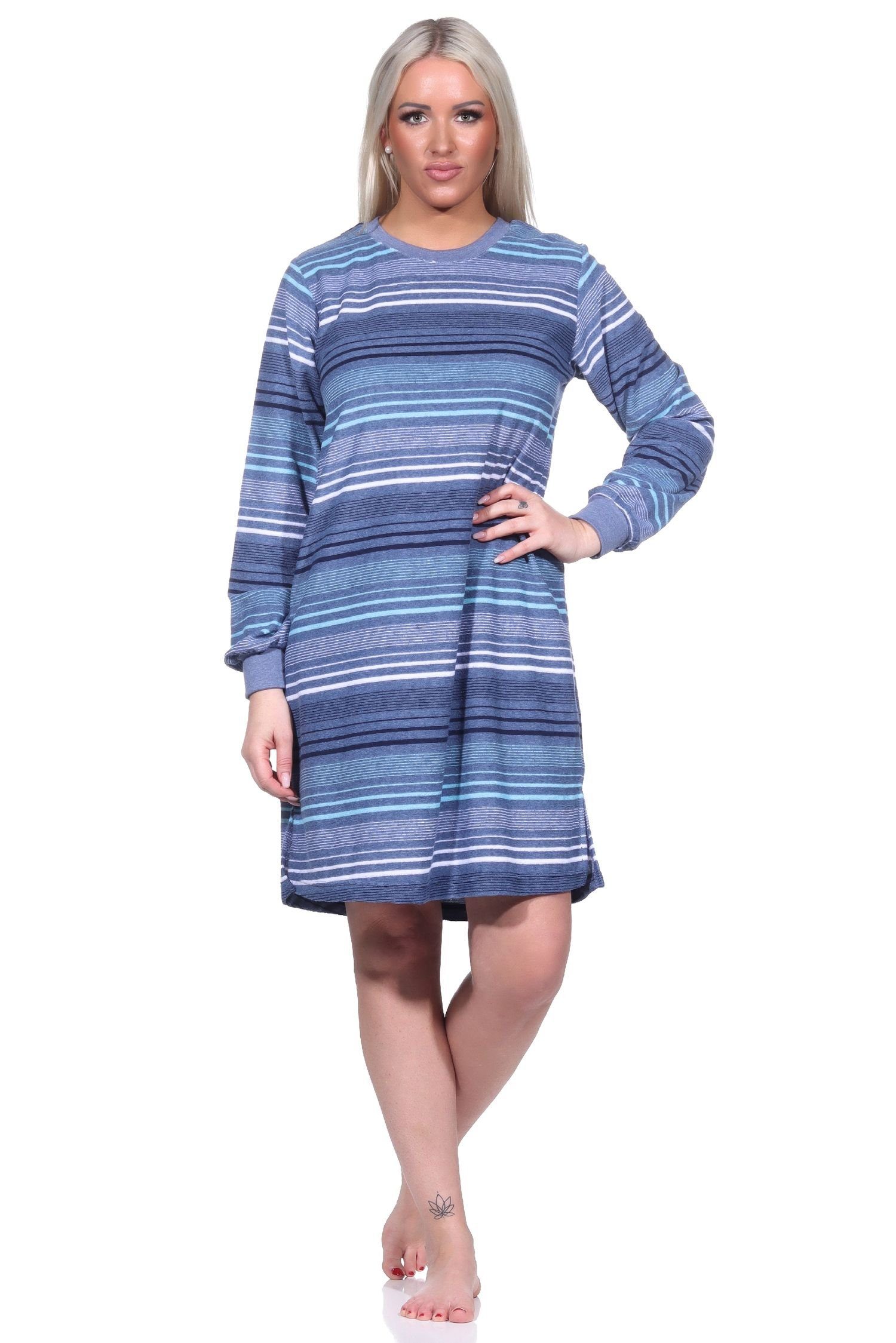 Damen Frottee Nachthemd langarm mit Bündchen in Streifendesign - auch in Übergrössen - 222 213 93 235