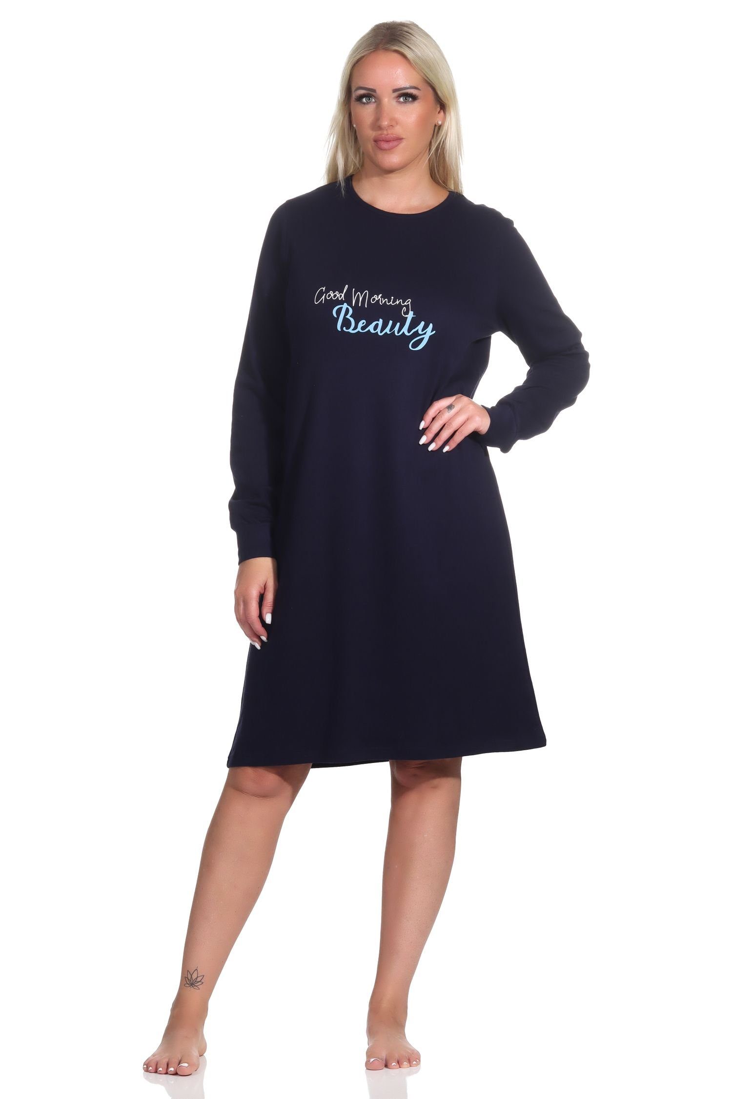 Mögen Sie es gerne kuschelig warm? Dann ist dieses Damen langarm Nachthemd in Kuschel Interlock Qualität die ideale Wahl, denn das Nachthemd hat eine edle Optik und kann sowohl am Tag als auch in der Nacht getragen werden.