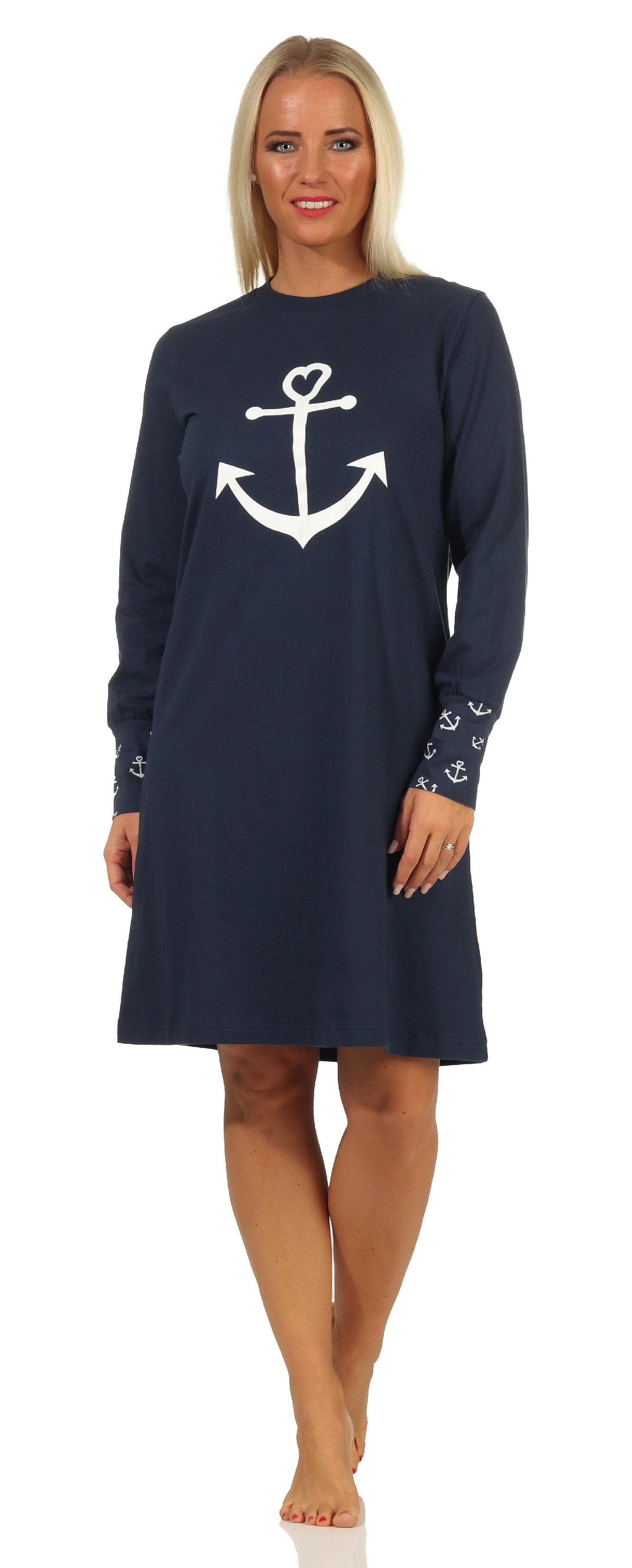Damen Nachthemd mit Bündchen in maritimer Optik mit Anker als Motiv - auch in Übergrössen - 212 213 90 910
