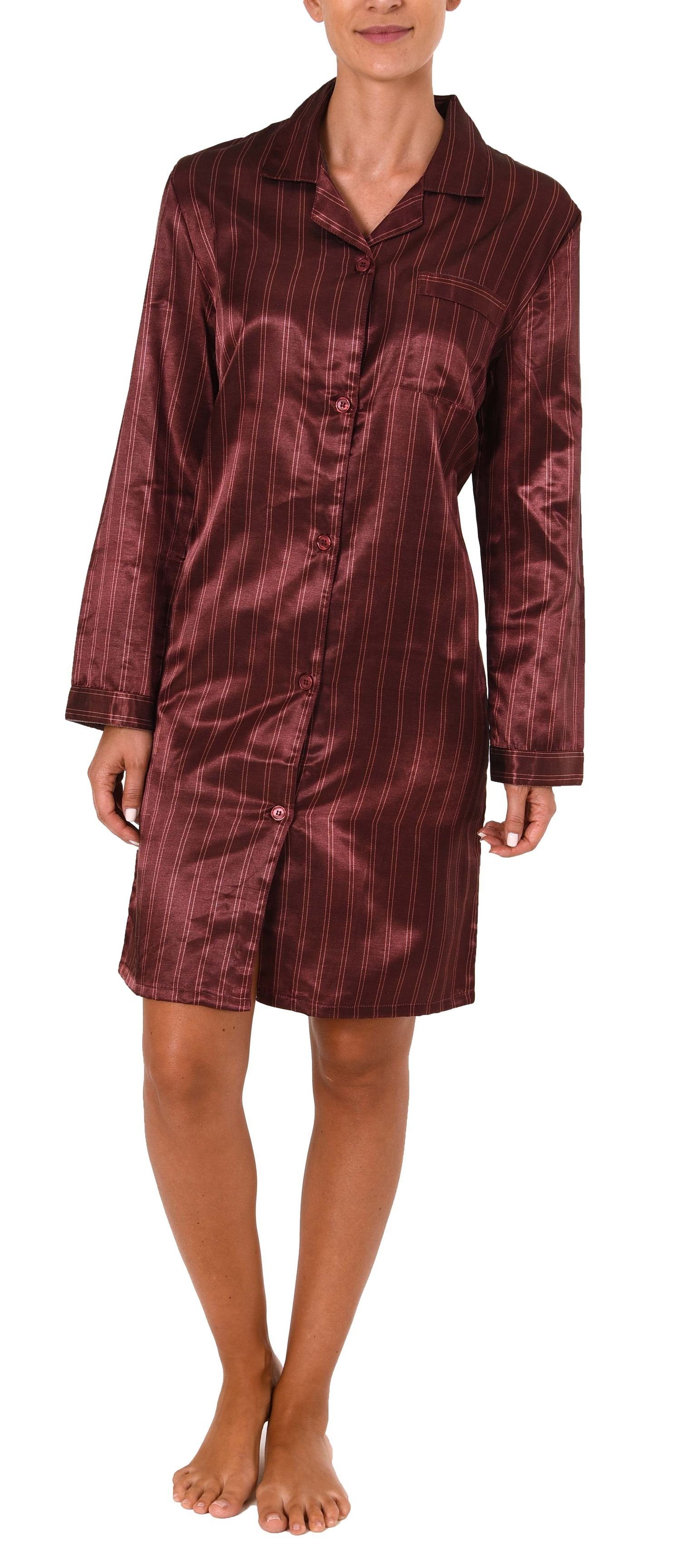 Elegantes Satin Nachthemd mit langen Ärmeln zum durchgeknöpfen - 61511