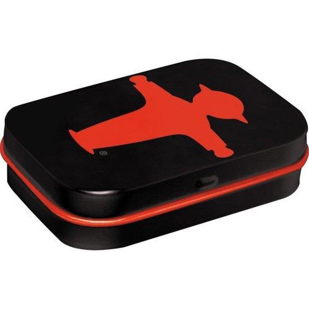 • Robuste Pillendose in einer handlichen Розмір von 6 x 4 x 1,6 cm, die mit leckeren Pfefferminzdragees eines namhaften deutschen Herstellers gefüllt ist.