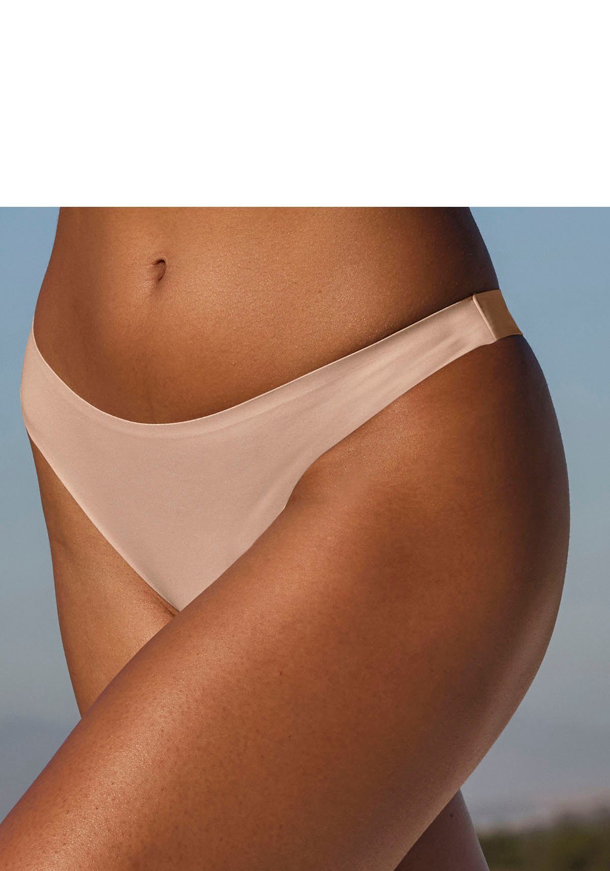 Tipp: Aufgrund der innovativen Bonding-Technologie werden die extra flachen, geklebten Kanten des Strings durch Körperwärme weicher. Daher muss der String beim ersten Tragen eher einen engeren Sitz haben, um später eine optimale, figurnahe Passform zu ermöglichen.