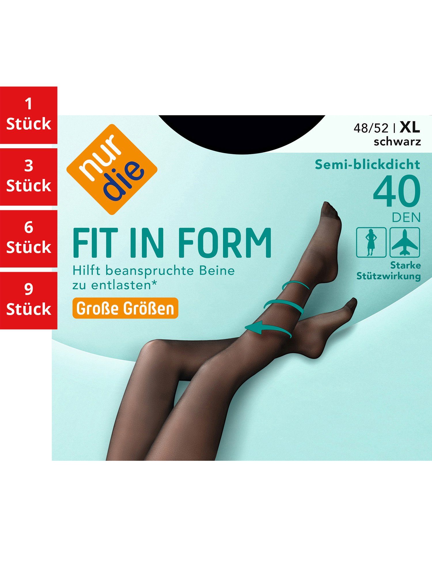Die Fit in Form Große Größen 40 DEN Feinstrumpfhose von NUR DIE ist eine semi-blickdichte Strumpfhose mit dezentem Glanz, die deinen beanspruchten Beinen eine starke Unterstützung durch einen anatomisch abgestuften Druckverlauf bietet. Dank der Verwendung der speziellen Faser sitzt diese Strumpfhose perfekt.