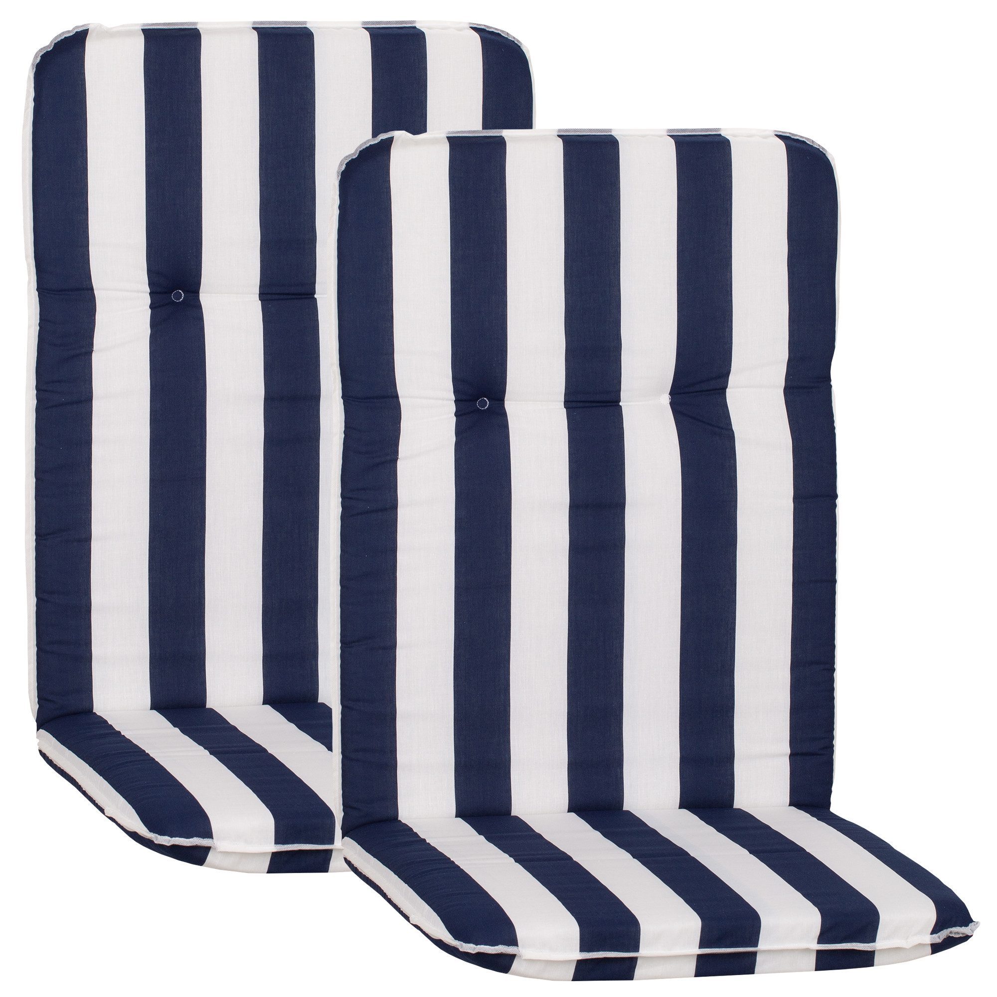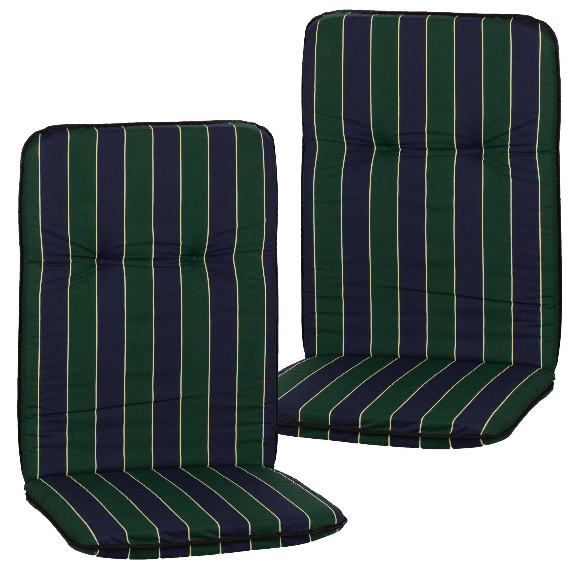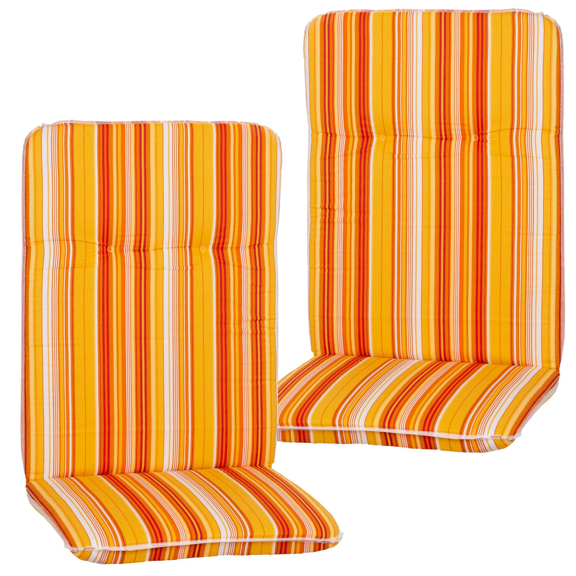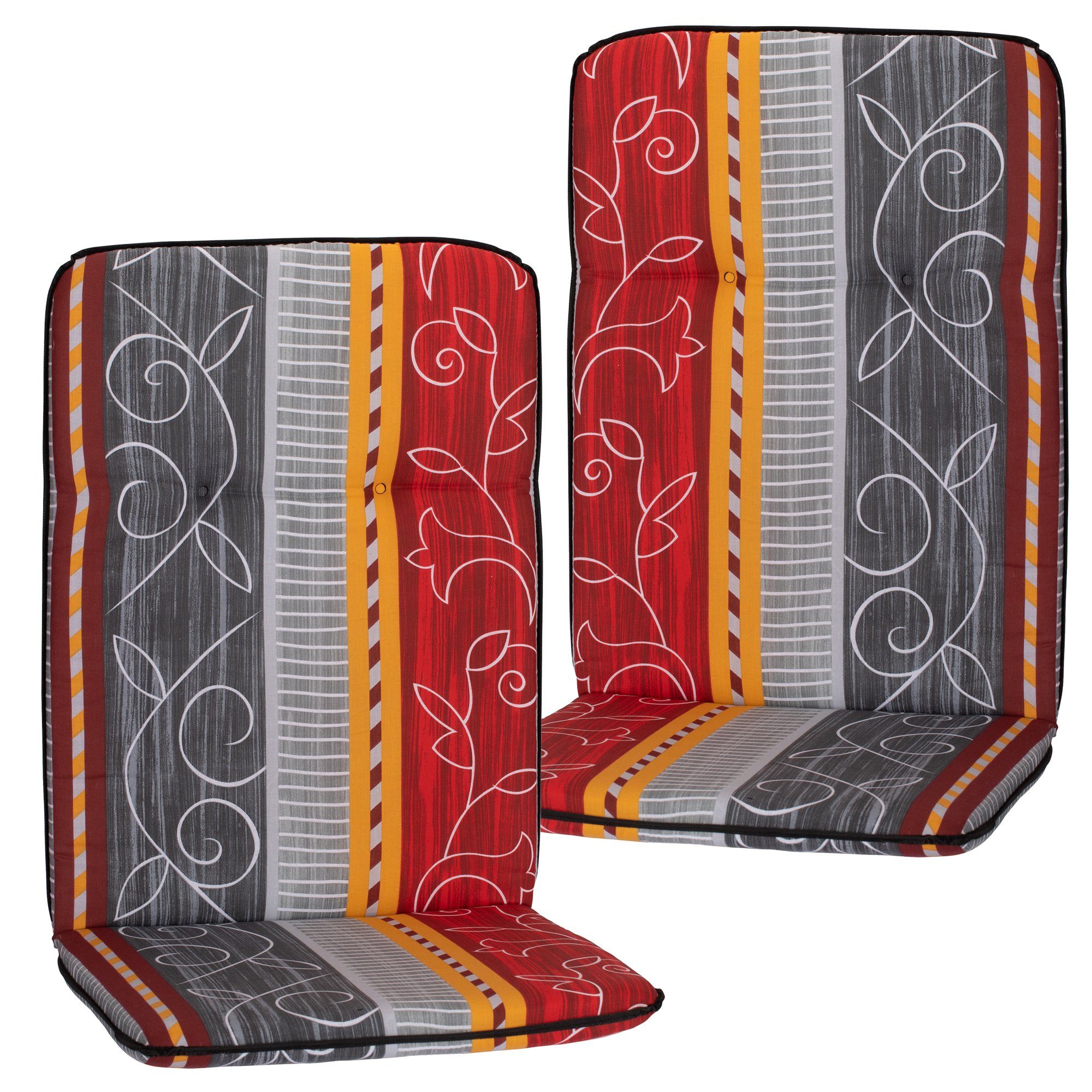 Die Polsterstärke von 5 cm garantiert ein bequemes Sitzerlebnis, während das Gummi-Halteband an der Rückenlehne für einen sicheren Halt sorgt. Hergestellt in der EU, sind diese Auflagen nicht nur robust und langlebig, sondern auch UV-lichtfest, sodass sie ihre leuchtenden Farben lange behalten.