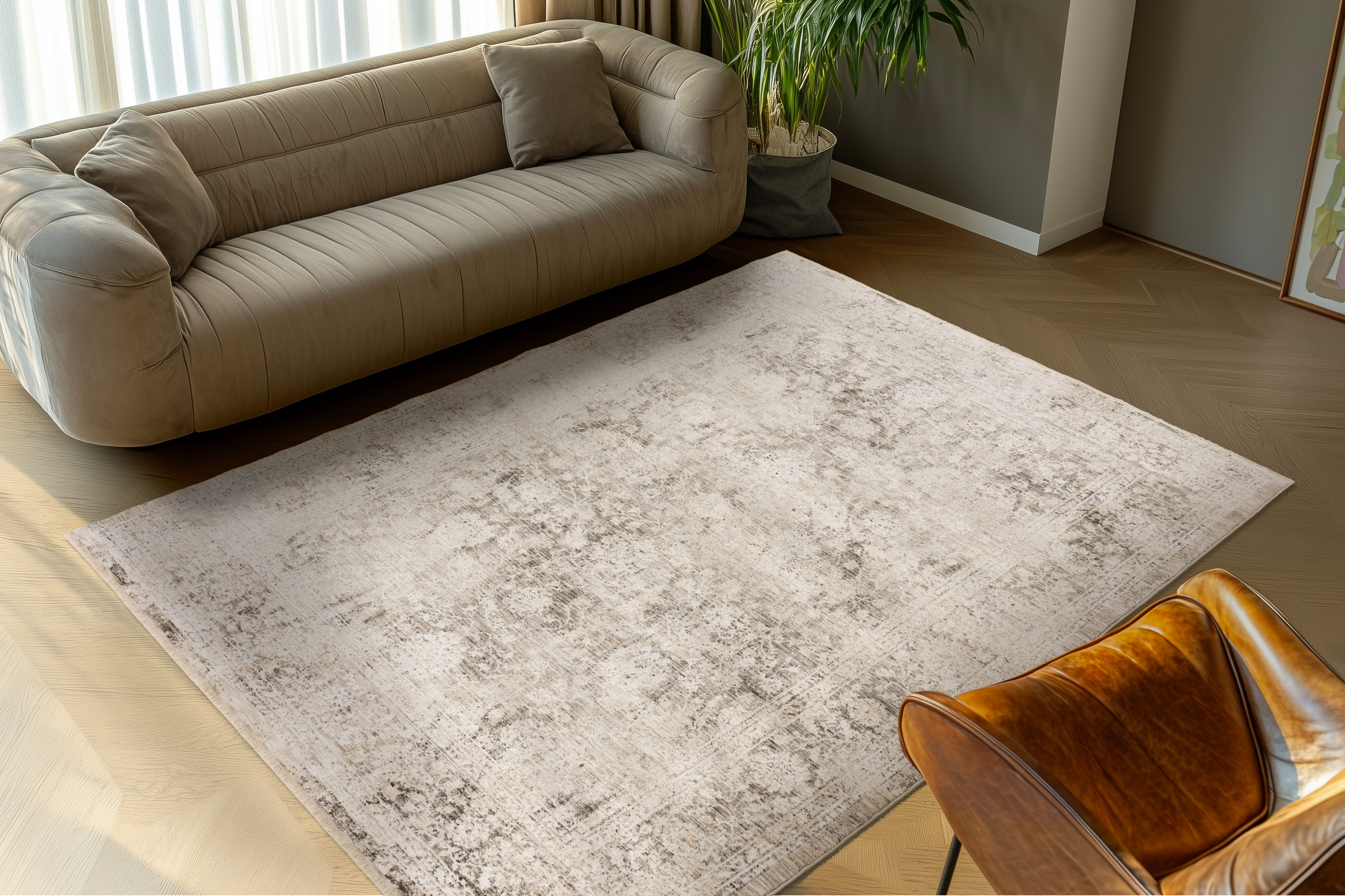 Maschinell gewebter Teppich | Beim Auslegen des Teppichs kann durch das Aufrollen der Teppich etwas wellig erscheinen, dieses legt sich nach kurzer Zeit aus. Sie können dieses etwas beschleunigen wenn Sie den Artikel in gegenläufiger Richtung nochmals aufwickeln. |
