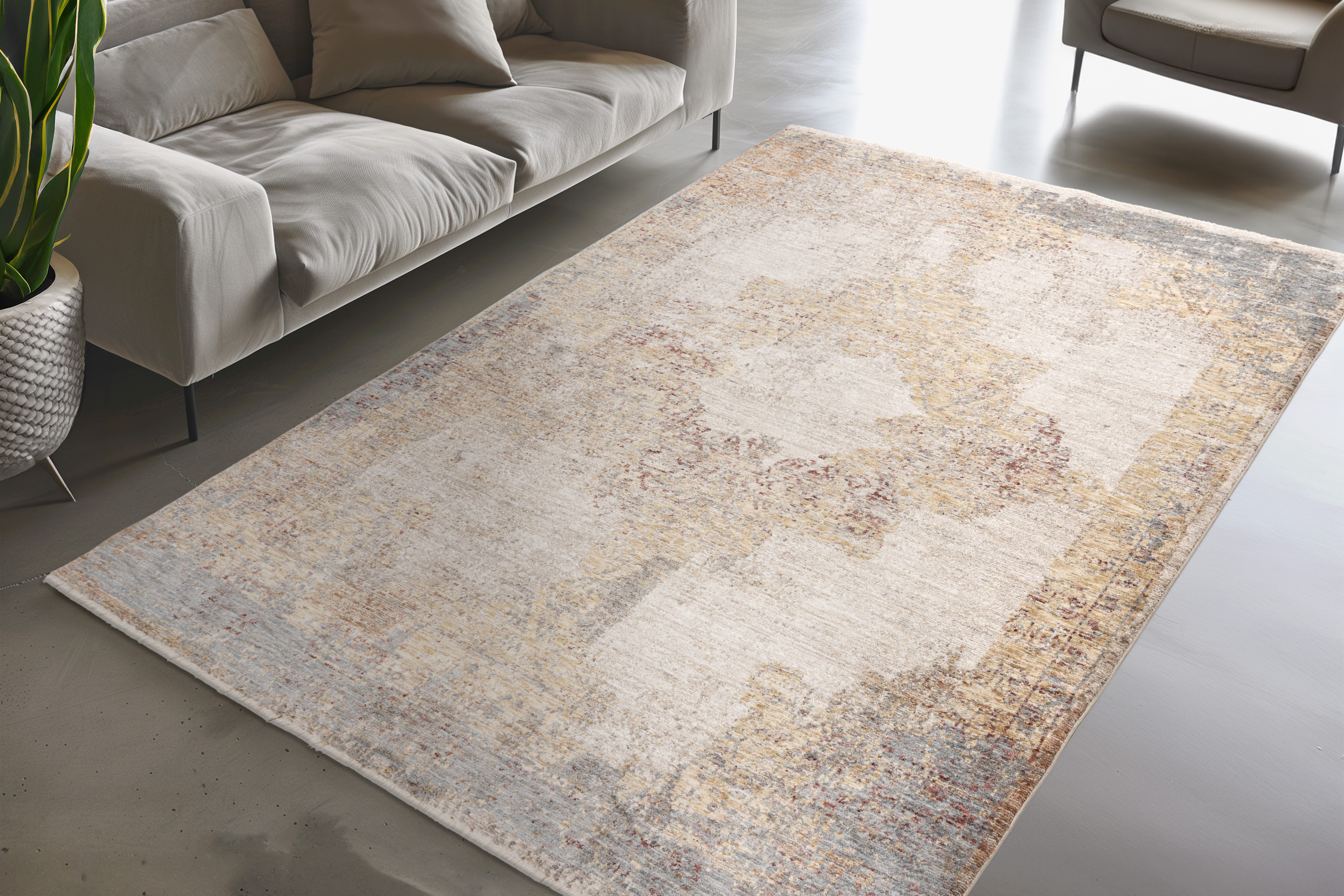 Maschinell gewebter Teppich | Beim Auslegen des Teppichs kann durch das Aufrollen der Teppich etwas wellig erscheinen, dieses legt sich nach kurzer Zeit aus. Sie können dieses etwas beschleunigen wenn Sie den Artikel in gegenläufiger Richtung nochmals aufwickeln. |