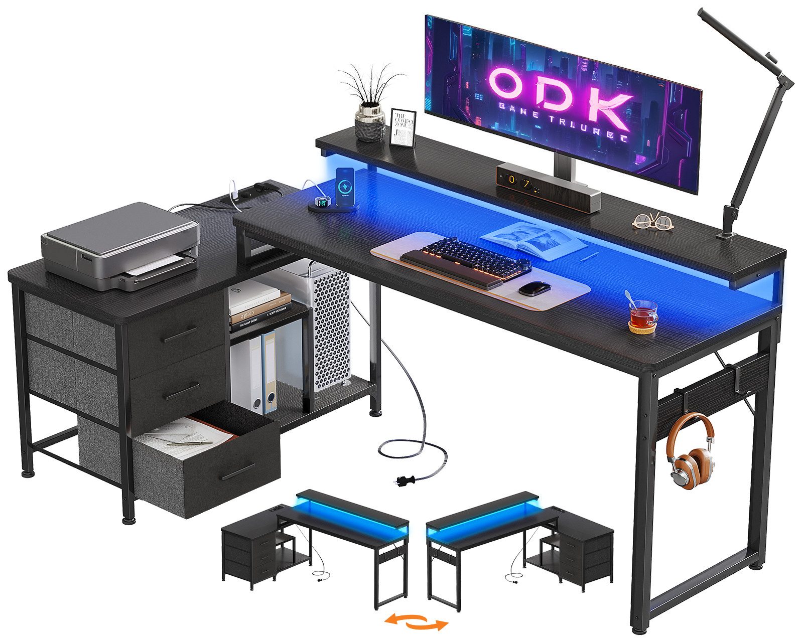 L-förmiger Computertisch ist mit 2 Stromanschlüssen & 2 USB-Ladeanschlüssen für Ihre elektronischen Geräte ausgestattet. Sie können Ihr Smartphone, Laptop, Spielgeräte und andere Bürogeräte einfach und bequem aufladen, wenn Sie arbeiten oder spielen.