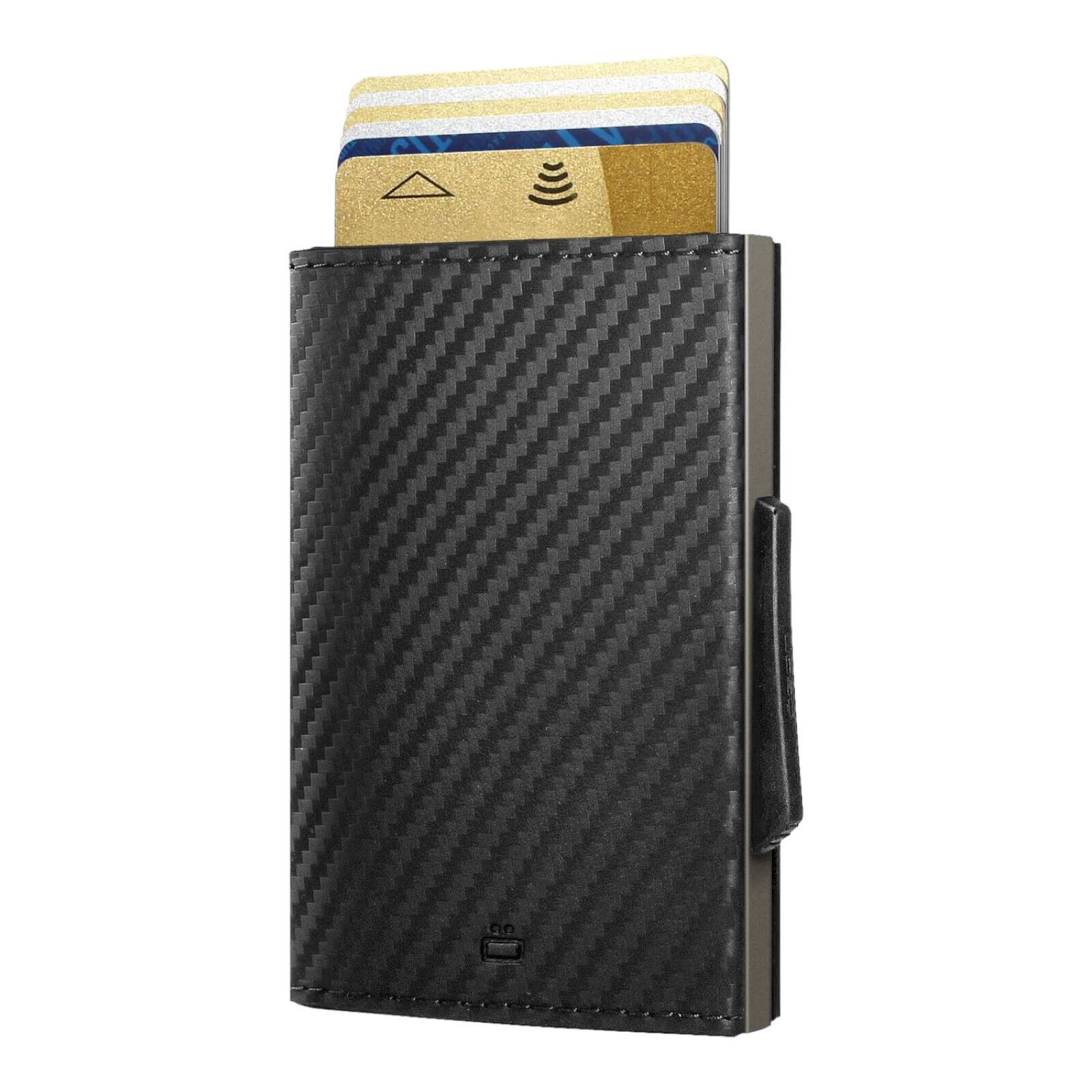 Hersteller:Ögon ModellNr :CL_Titanium_Carbon Material/Farbe:Leder - Aluminium / schwarz Außenmaße:L x B x H: ca. 10 cm x 7 cm x 1,5 cm Produktion/Hinweis: Sofortiger Zugriff auf deine Karten - Mit dem cleveren Pop-up-Mechanismus hast du im Handumdrehen Zugriff auf deine Karten Das Portemonnaie in Carbon-Finish-Leder-Optik überzeugt mit seinem hochwertigen und Stilvollen Design, Hergestellt in Frankreich, Dank der RFID-Schutztechnologie sind deine Karten vor Datenklau und unbefugtem Zugriff geschützt Flexible Kapazität - Platz für 1 bis 8 Karten, Bargeld und Dokumente, damit du stets organisiert und vorbereitet bist Abmessungen: B: 7 cm H: 10 cm T: 1,5 cm Lieferumfang1 x Geldbörse