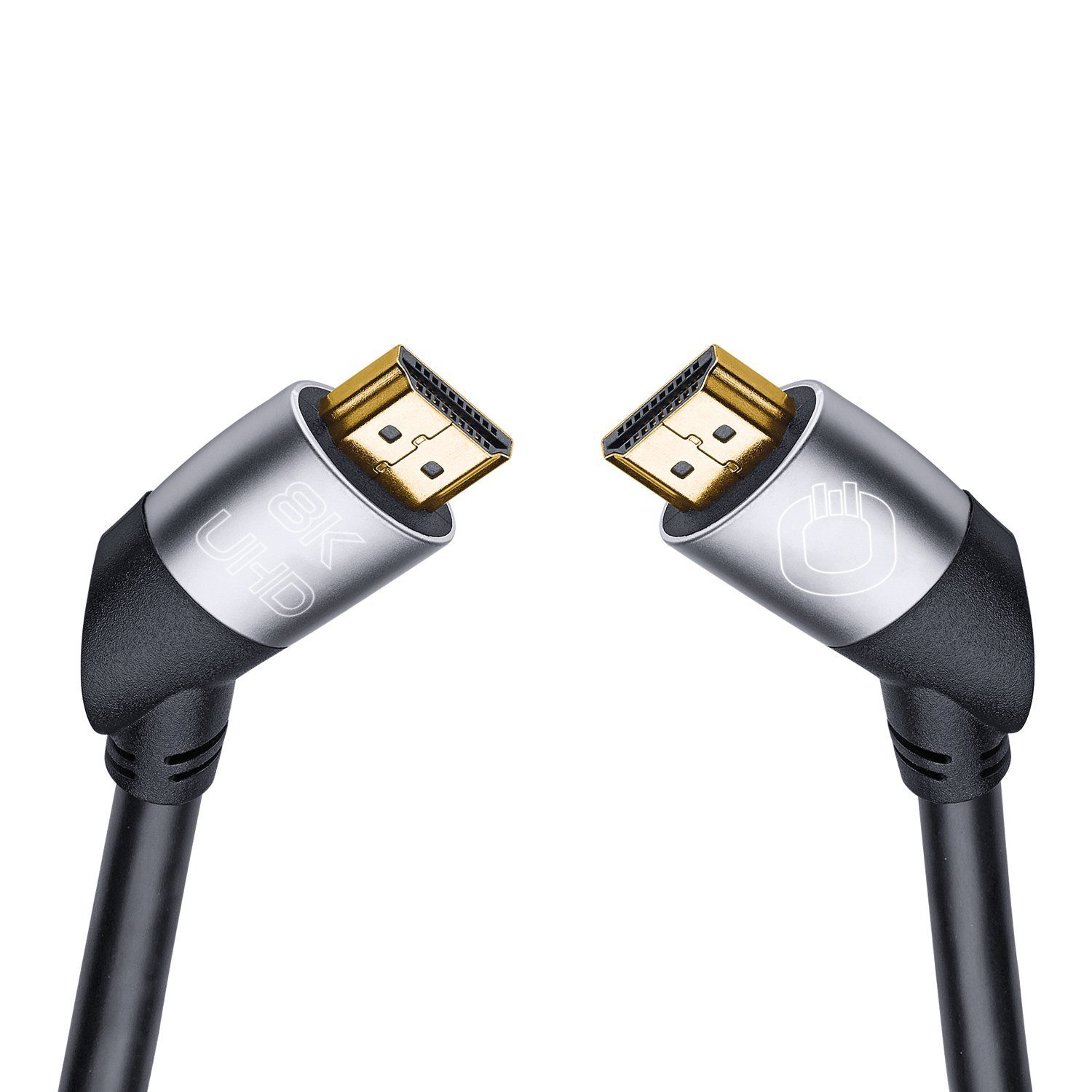 Das 8K Ultra High Speed HDMI Kabel unterstützt den hochwertigen Einstieg in die neue Home Entertainment und liefert mit Datenraten von bis zu 48 Gbit/s die volle Bandbreite des Datenumfangs aktueller 8K (bis zu 60 Hz) und 4K (bis zu 120 Hz) Ultra-HD-Signale. Die 3D-Tonformate Dolby Atmos und DTS werden vom Easy Connect UHD verlustfrei an ein angeschlossenes AV-Gerät transportiert. Die solide Stecker im 40° Winkel (die Seiten sind spiegelverkehrt gewinkelt, siehe Foto) garantieren maximale Signalstabilität, der Innenleiter ist aus sauerstofffreiem Kupfer (OFC) gefertigt und das Kabel ist 3-fach geschirmt und bietet somit einen hochwertigen Schutz vor Störsignalen.