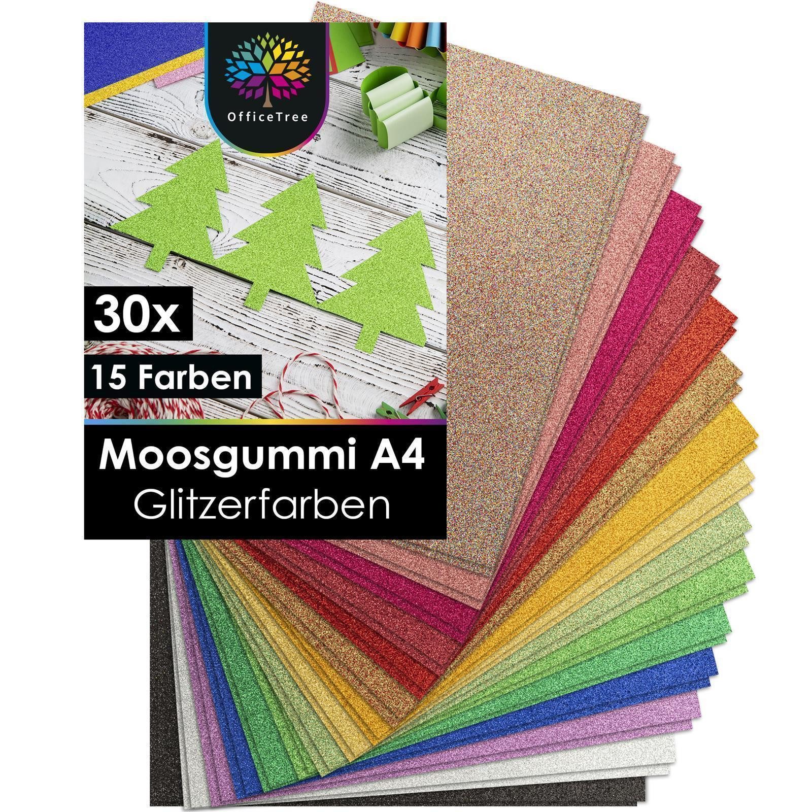 FARBENFROH – OfficeTree 30 Bögen Bastel Glitzer Moosgummi Bunt DIN A4, farbig sortiert, 15 Farben, 2 mm stark