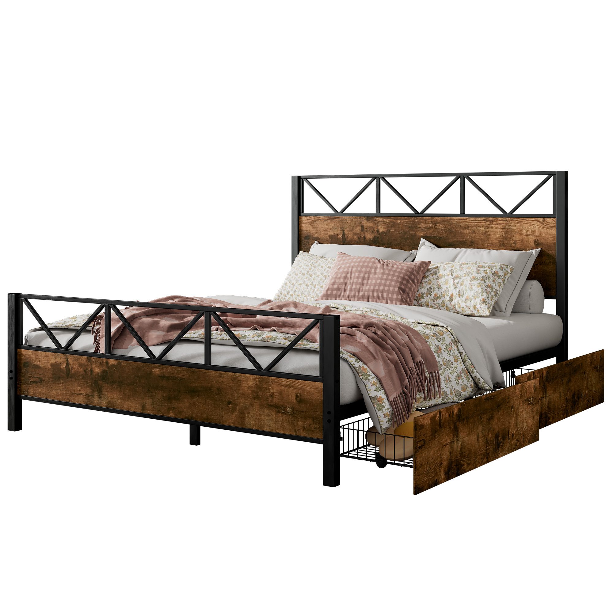 Das Bettgestell besteht aus einem hochwertigen Metallrahmen und stabilem MDF in Holzoptik, das für Langlebigkeit und eine Tragfähigkeit bis zu 315 kg sorgt. Die Kombination aus Metall und MDF bietet eine strapazierfähige und optisch ansprechende Lösung für jedes Schlafzimmer.