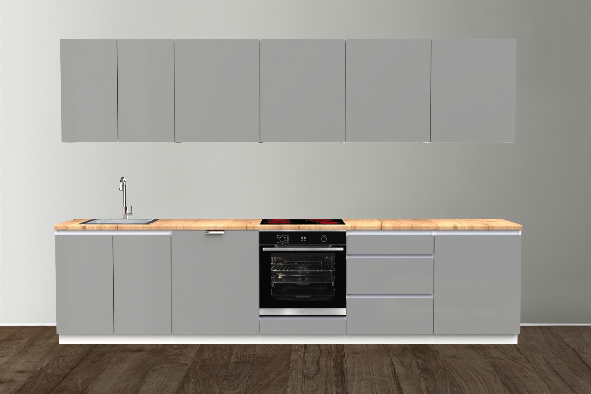 Hinweis Lieferumfang | Arbeitsplatte , abzugshaube , Herd,Backofen , Spüle , Beleuchtung , Armatur und Dekoration sind NICHT im Angebot enthalten. |