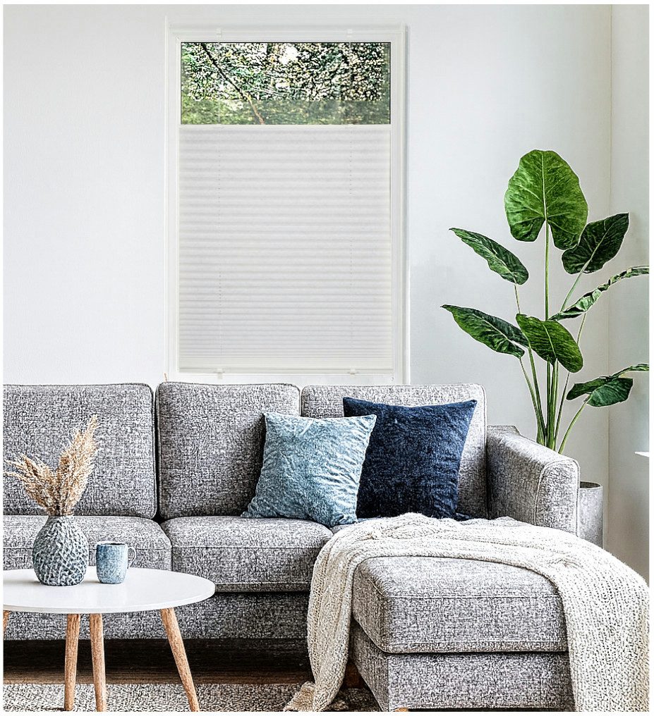 BEDIENUNG : Stufenlos verstellbar in beiden Richtungen, kein Pendeln. Das Plissee ist Feuchtraumgeeignet und die perfekte Lösungen für Mietwohnungen.