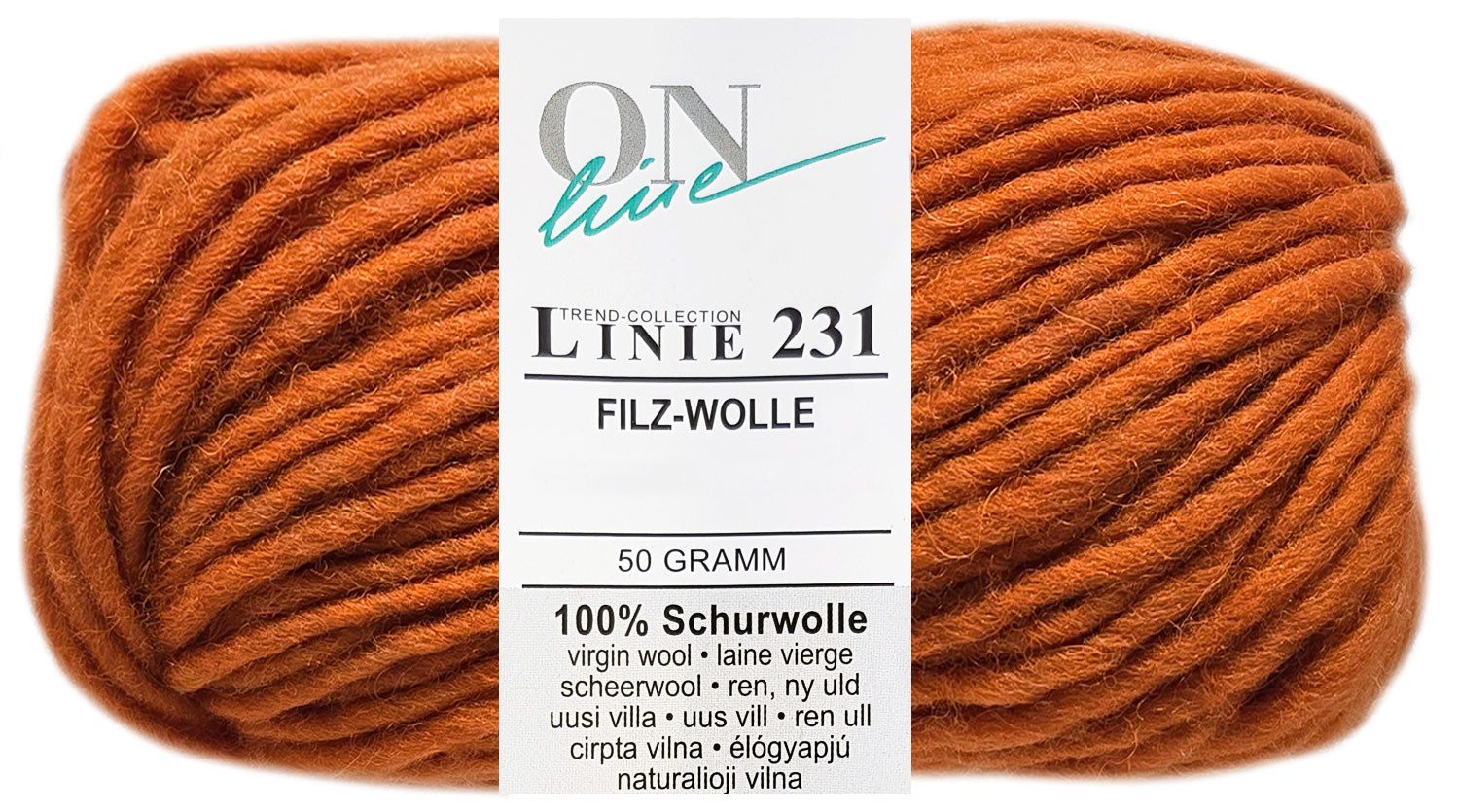 50 Gramm ONline Linie 231 Filz Wolle Uni