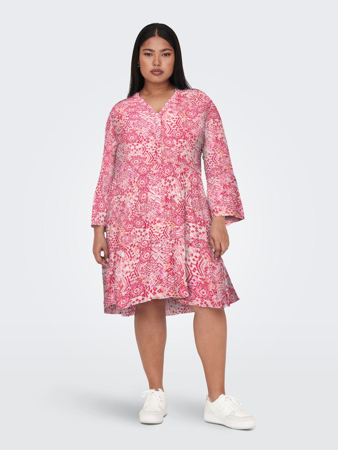 Mit dem knieumspielenden Tunikakleid »CARMARRAKESH LIFE 3/4 TUNIC DRESS AOP« von ONLY CARMAKOMA bist du leger unterwegs. Der großzügige Schnitt schmeichelt jeder Figur.