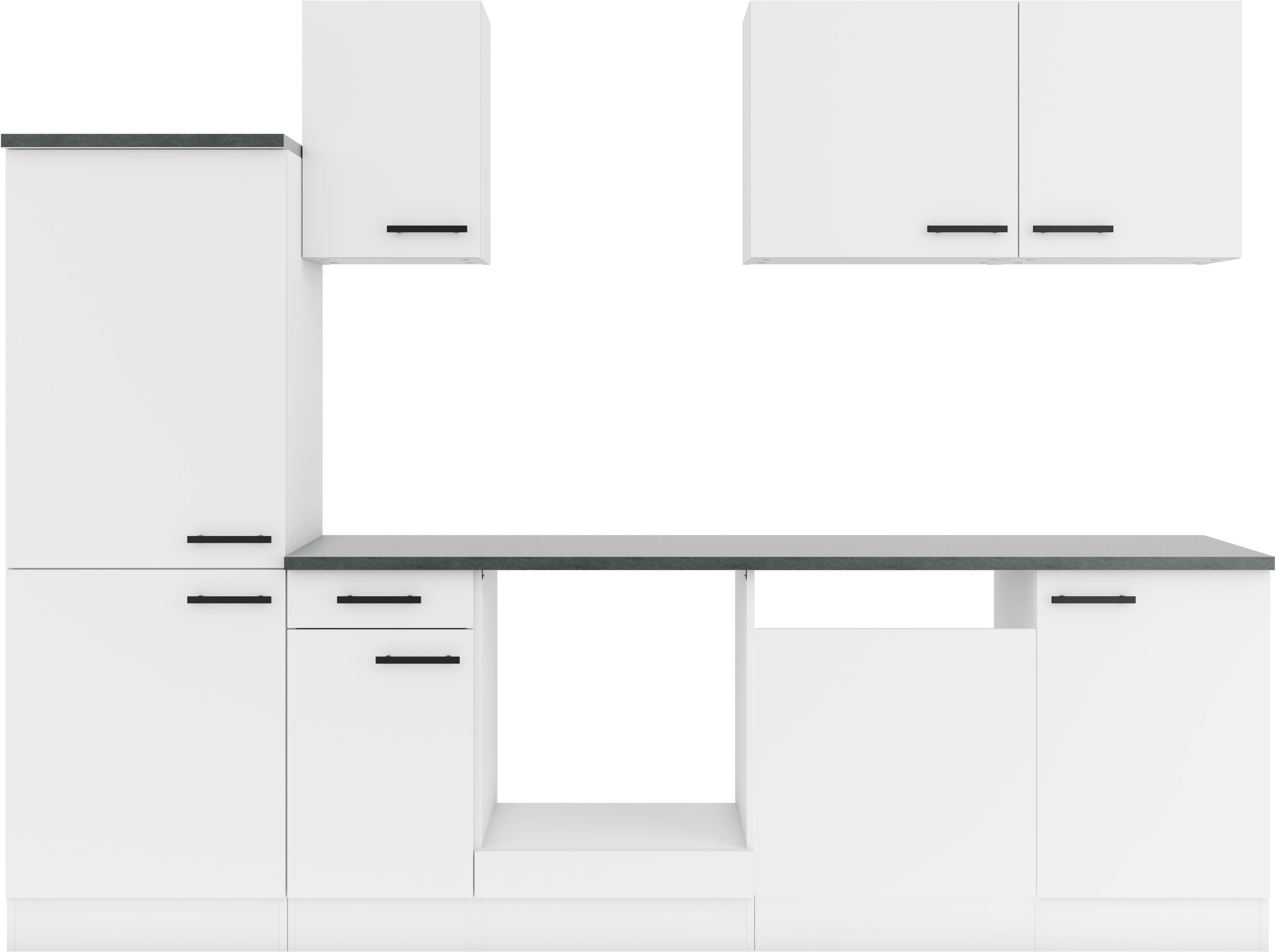 Informationen Arbeitsplatte | ohne Ausschnitte - dadurch sind die Schränke zum Teil variabel stellbar |