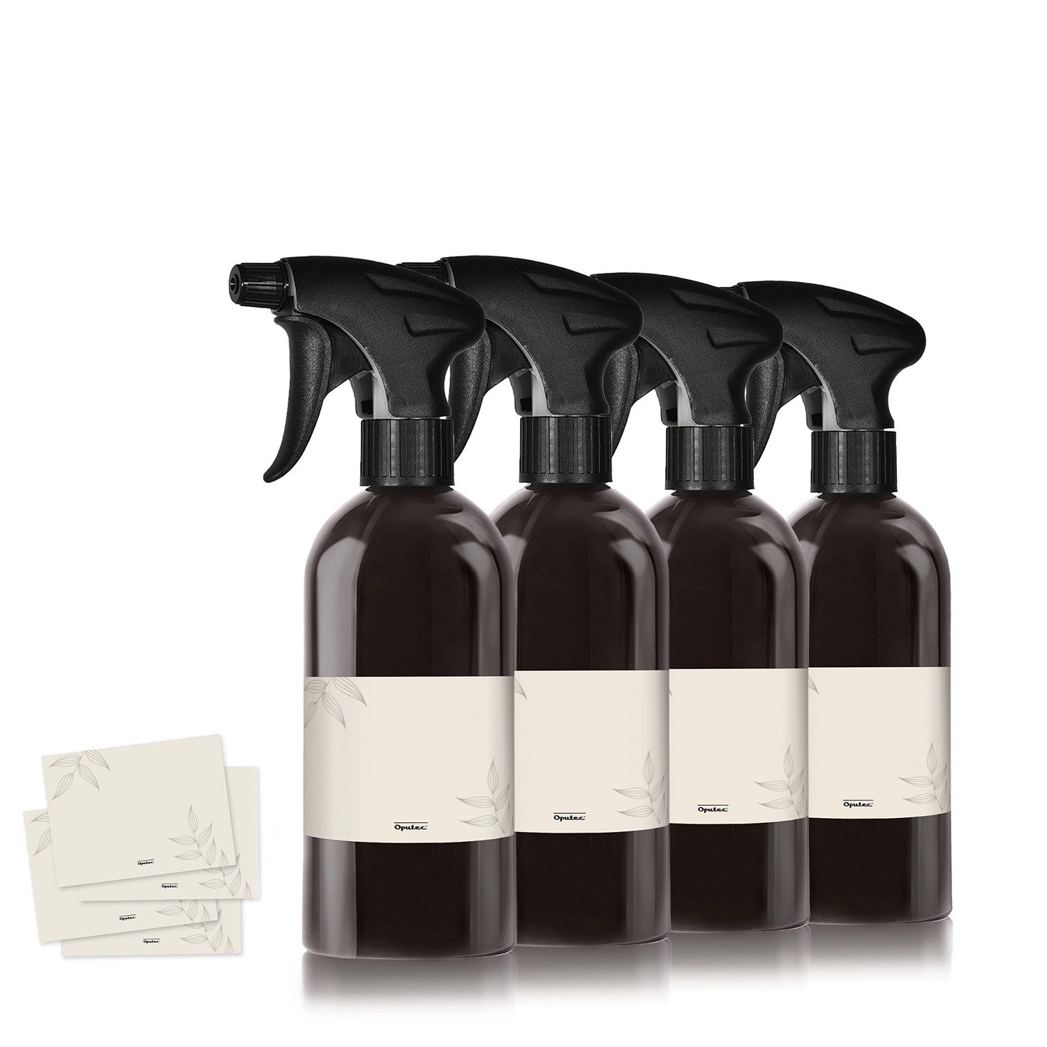Oputec Sprühflasche 4 x 500ml Sprühflasche aus Kunststoff Schwarz zum Befüllen + Etiketten