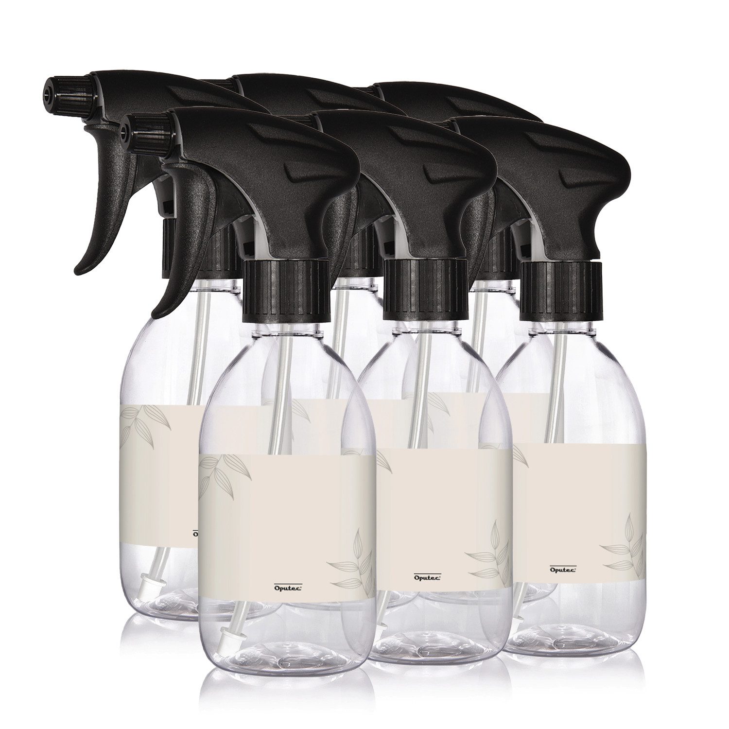 Oputec Sprühflasche 6 x 300ml Sprühflaschen Kunststoff Transparent zum Befüllen +Etiketten
