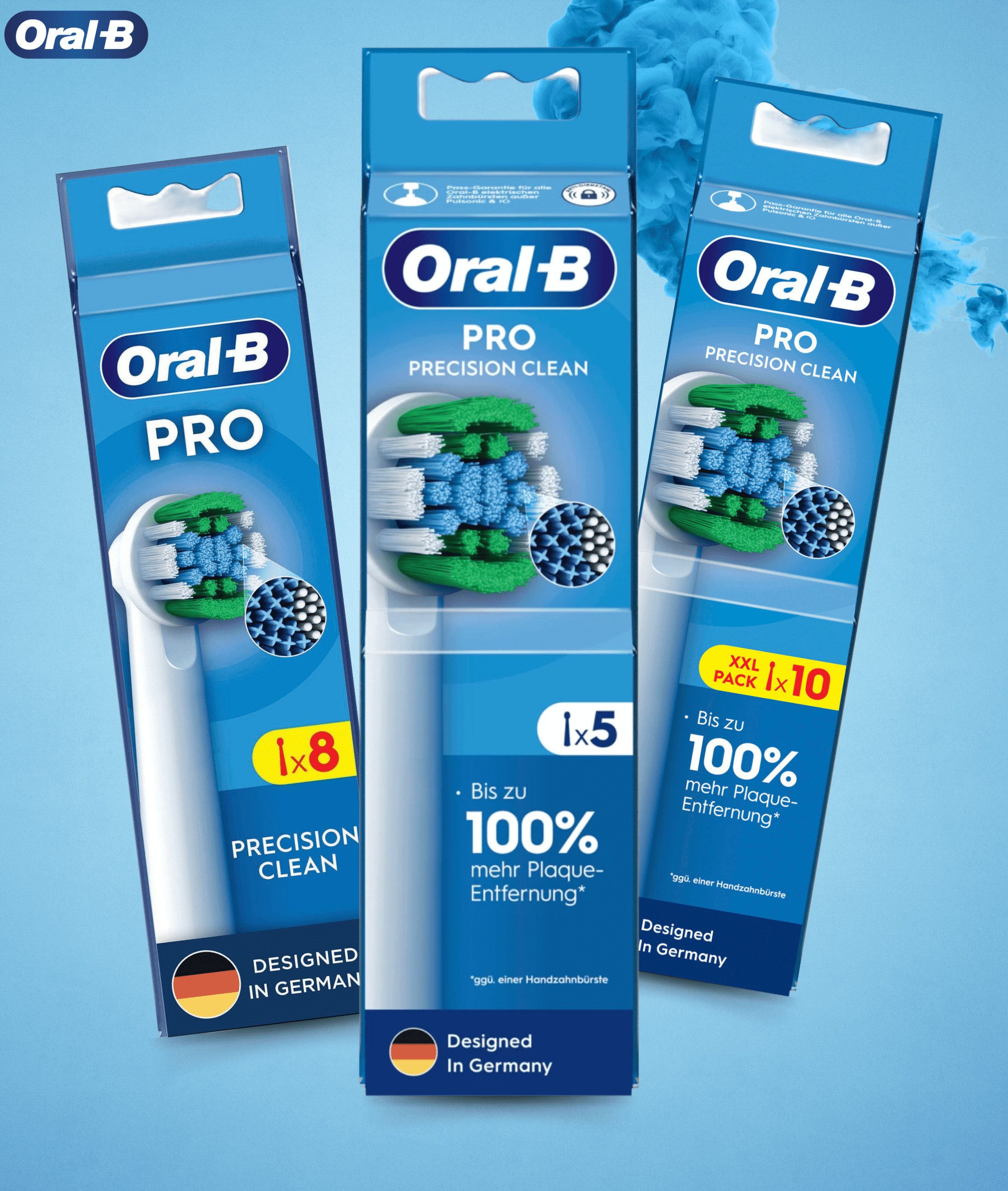 Die Oral-B Precision Pro Aufsteckbürsten sind mit den meisten Oral-B elektrischen Zahnbürsten kompatibel und sorgen für eine angenehme Reinigungserfahrung. Sie gewährleisten eine gründliche Reinigung und unterstützen die Gesundheit von Zähnen und Zahnfleisch.