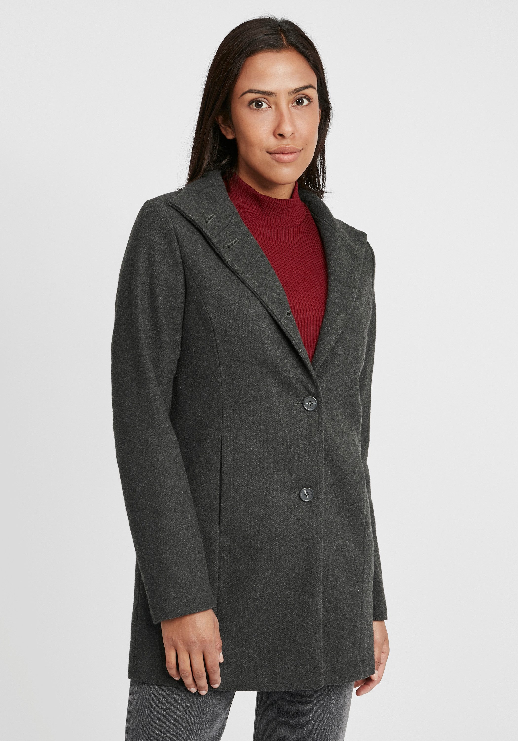 Besondere Merkmale | Wollmantel mit hochabschließendem Kragen |