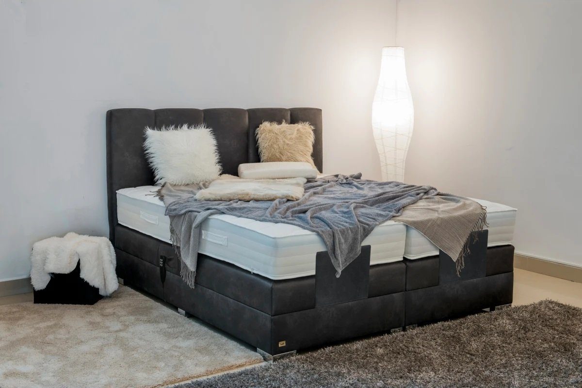 Hochwertiges und multifunktionales Boxspringbett mit Motorverstellung. Unsere Motoren verfügen über eine Leistung von ca. 10.000 Newton und sind somit einer der stärksten Motoren, die bei der Herstellung von Boxspringbetten benutzt werden. Lassen Sie sich nach einem langen Tag einfach fallen und genießen Sie den Liegekomfort eines 3-Schicht-Boxspringbettes.