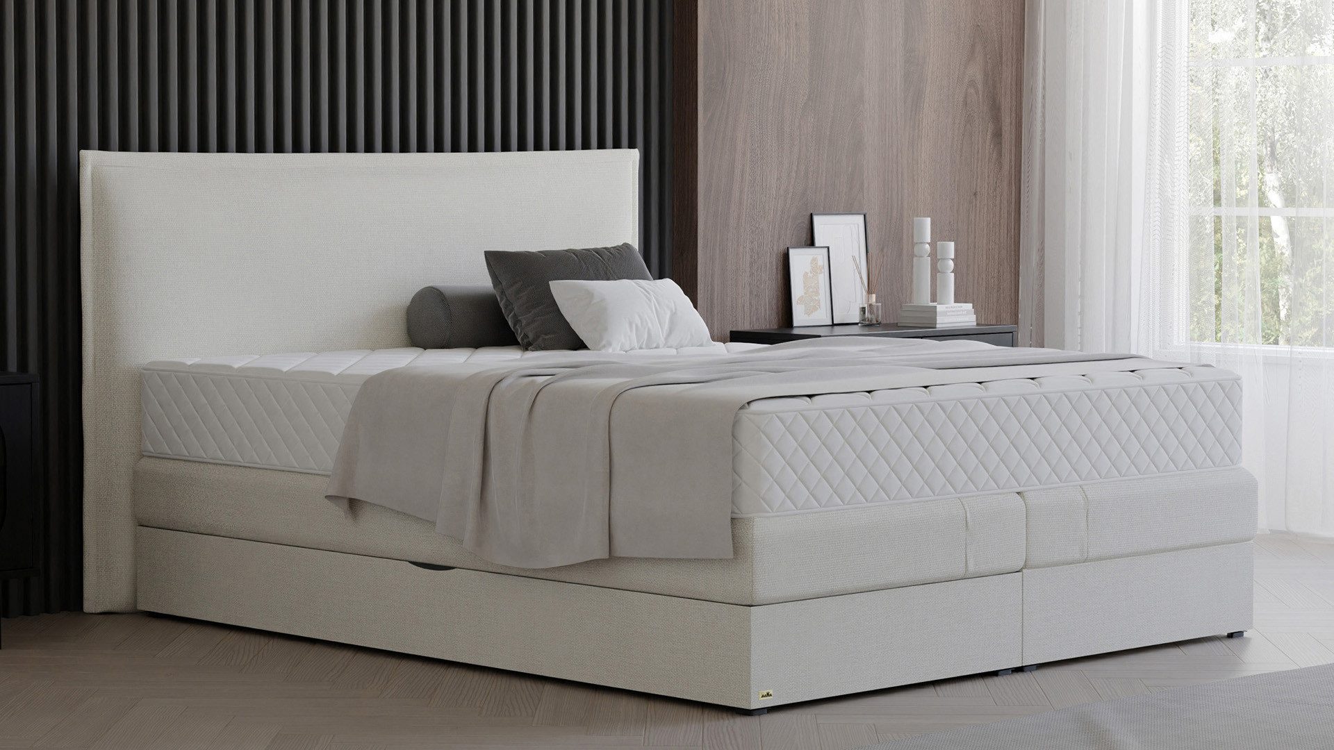Lassen Sie sich nach einem langen Tag einfach fallen und genießen Sie den Liegekomfort eines 3-Schicht-Boxspringbettes.