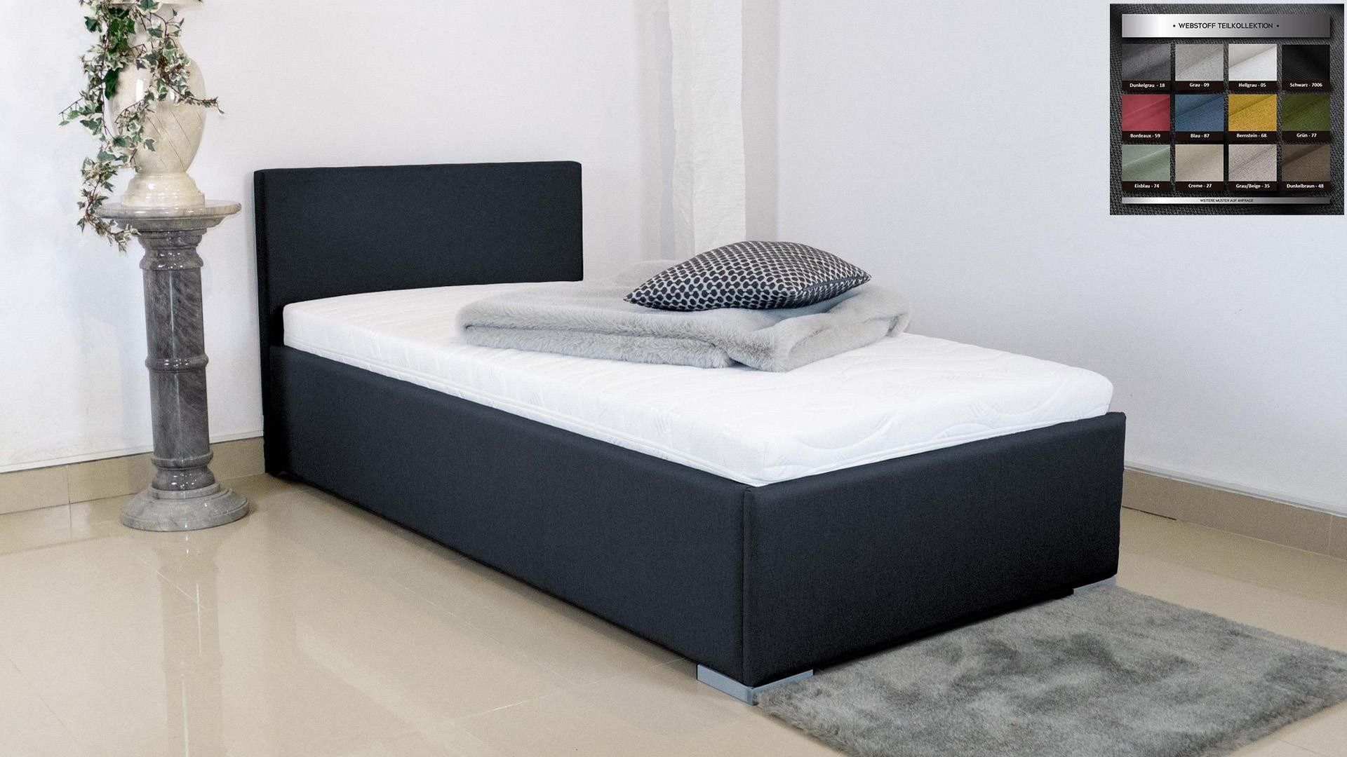 Hinweis Lieferumfang | Komplettpaket, Polsterbett mit Bettkasten, inkl. Lattenrost/e und Matratze/n, inkl. kostenlose Farbwahl (siehe Farbpaletten), inkl. Lieferung und Aufbau in 2-Mann Besatzung |
