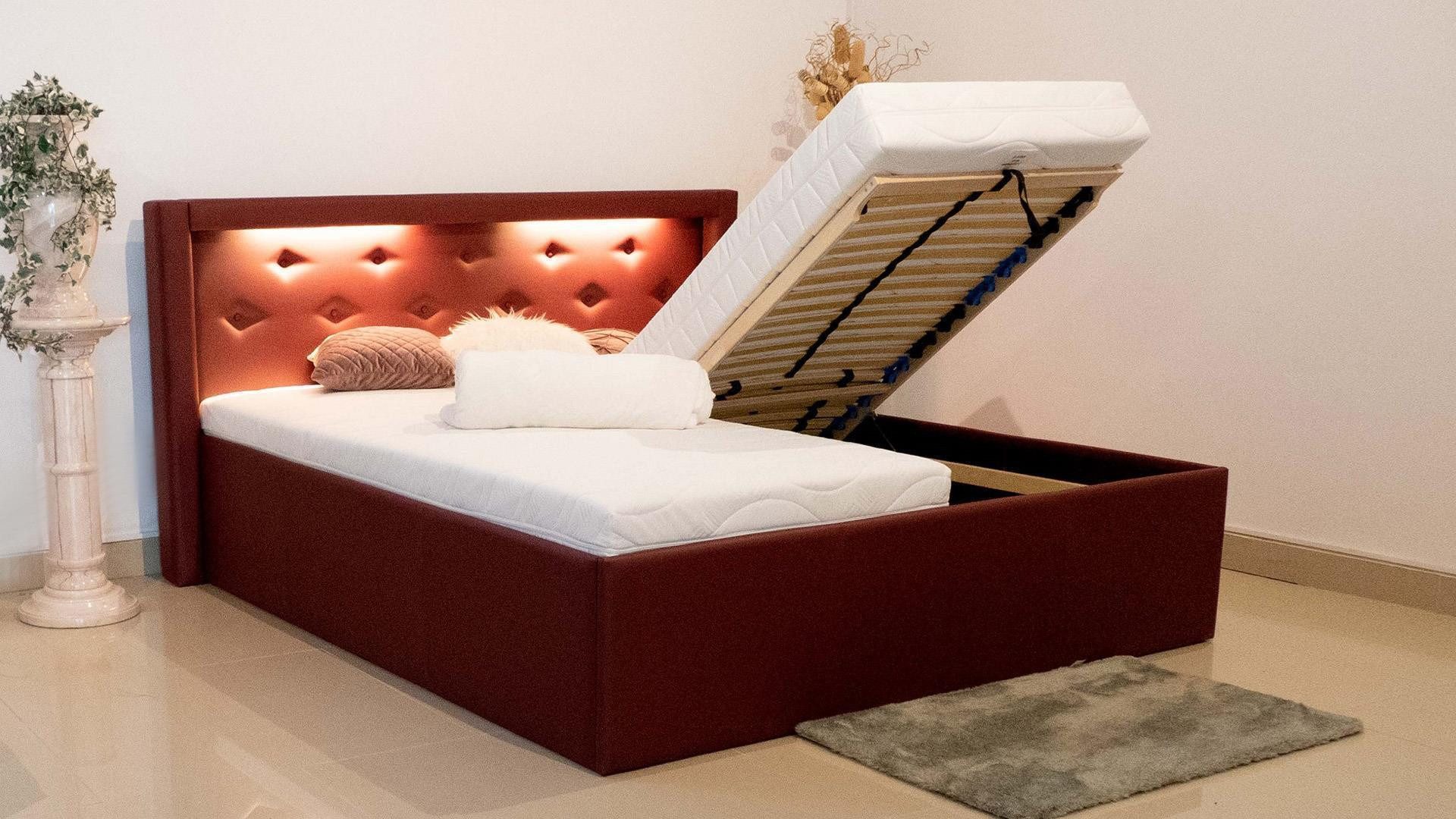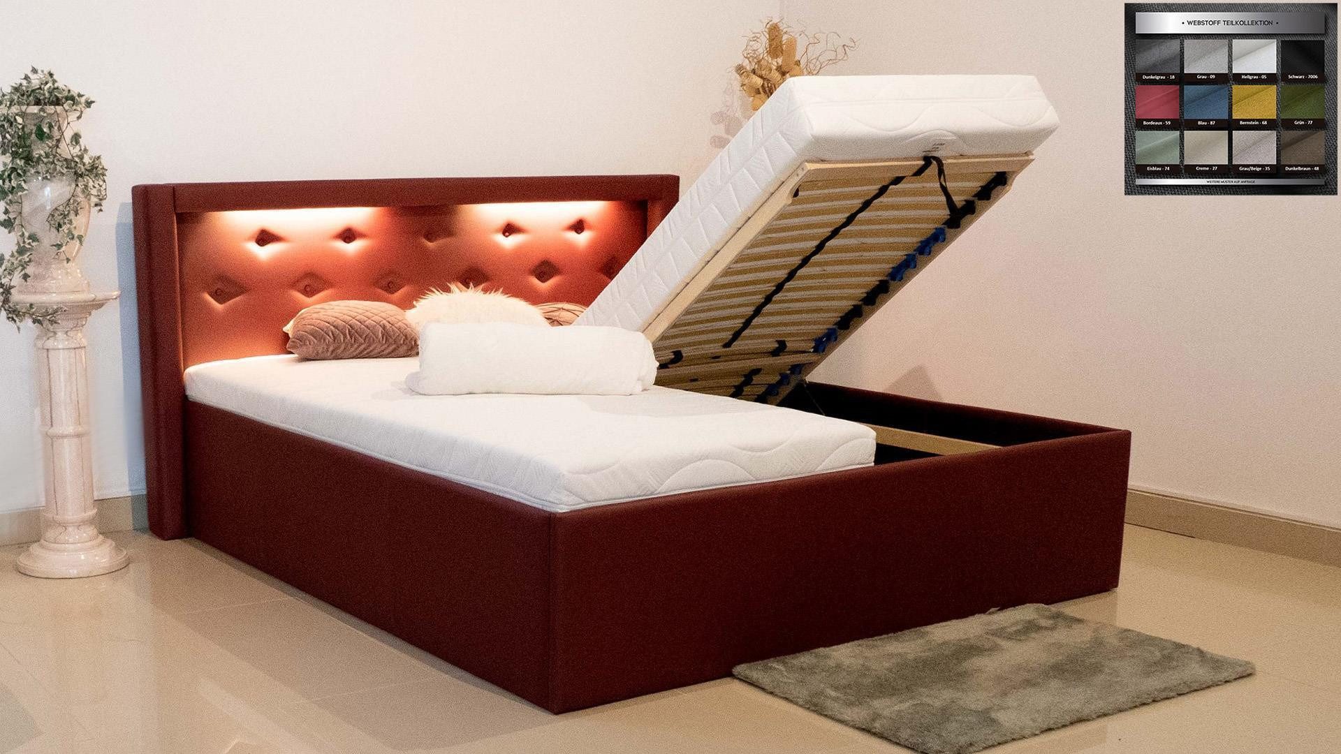 Hochwertiges und sehr stabiles Polsterbett mit Bettkasten und Kopfverstellung mit hochwertiger LED-Beleuchtung im Kopfteil.