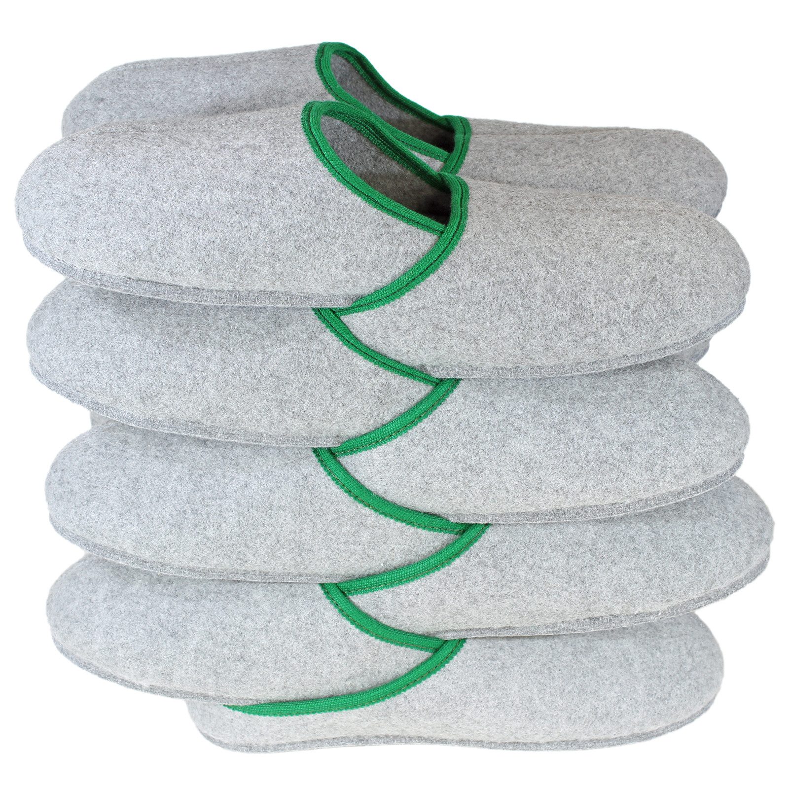 Vorteile unserer Filzüberzieher für Schuhe Fußböden Schutz im Gewerbe & in Wohnbereichen vor Schmutz an Straßenschuhen UND vor Kratzern, die durch Steinchen o.Ä. im Sohlenprofil entstehen können Vielseitig: Gästehausschuhe / Schuh-Überzieher für Handwerker / Museumspantoffel Passend als Überzieher für Schuhe bis Розмір 48 mit durchschnittlicher Weite / durchschnittlichem Spann Qualitätspantoffel made in Germany 100% echter Walkfilz Sie haben die Wahl: Trittsichere Anti-Rutsch-Sohle aus Gummi ODER leise gleitende & schonend federnde Sohle aus Filz Zeitersparnis: Einfach & schnell mit Straßenschuhen in die Überzieher schlüpfen und sorgenfrei auf sauberen Böden laufen - Die auch im Anschluss noch sauber sind Unisex Design in neutralem grau mit grüner Borde
