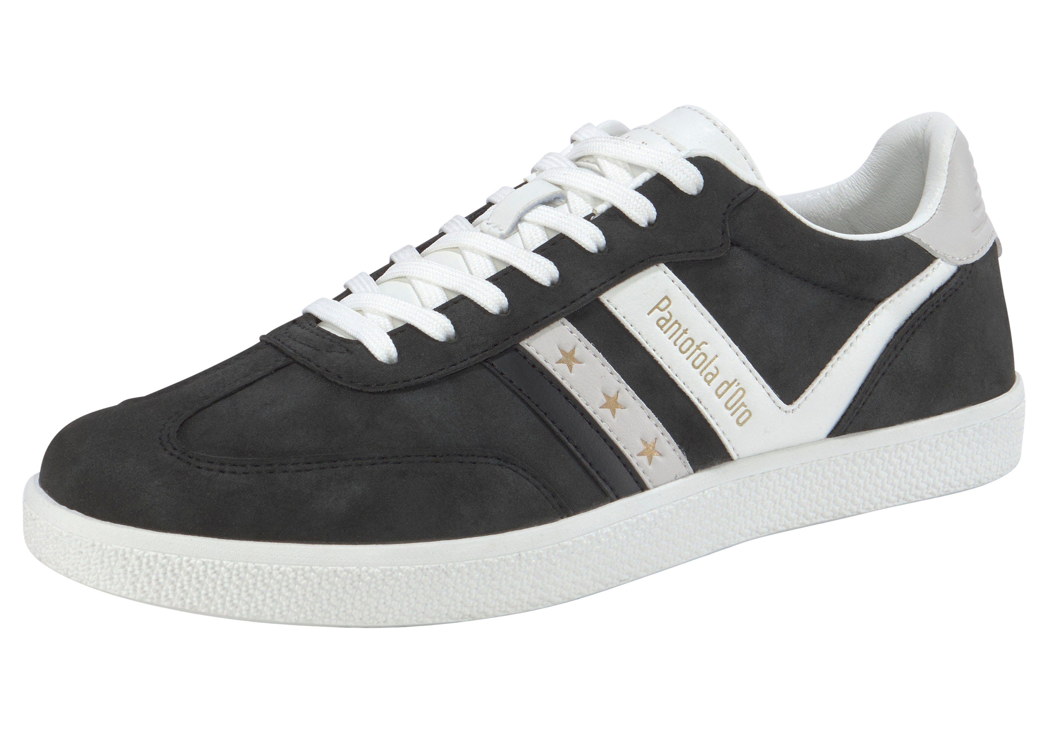 Mit den Sneakern »LORETTO UOMO LOW« der Marke Pantofola d´Oro triffst du eine gute Wahl. Durch die Schnürung lassen sich ausgefallene Schnürmethoden umsetzen, die zum modischen Hingucker werden. Mit dem Obermaterial aus Synthetik sind die Schuhe kaum schmutzempfindlich und pflegeleicht. Tipp: Beim Kauf solltest du auf ausreichend Platz zwischen deinen Zehen und der Schuhwand achten. Probiere Schuhe am besten am Nachmittag oder Abend an, da deine Füße durch die Belastung im Laufe des Tages breiter werden.