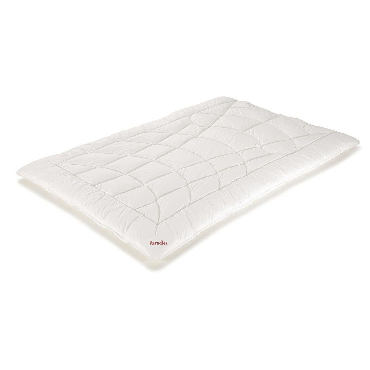 Paradies Biofill - die umweltschonende Textilfaser-Füllung aus jährlich nachwachsenden, pflanzlichen Rohstoffen.Erholsamer Schlaf, nachhaltige Zukunftssicherung und Schutz der Umwelt zugleich. Der Mako-Feinperkal-Bezug aus Pardies Greentex - Bio-Baumwolle aus kontrolliert biologischem Anbau (kbA) mit jojoba- und Peach-Skin-Veredelung macht die Bettdecke kuschelig weich. Material:: Bezug Bettdecke: Mako-Feinperkal (100% Baumwolle), Füllung Bettdecke: Paradies Biofill (100% Polyacitid). Artikeldetails:: Wärmeklasse: normal oder warm, Füllgewicht Bettdecke (g): »Steppbett (normal)«: : 1345 (135x200 cm), 1530 (155x200 cm), 1670 (155x220 cm) »Duosteppbett (extrawarm)«: : 1480 (135x200 cm), 1680 (155x200 cm), 1840 (155x220 cm), Farbe: weiß. Pflegehinweise: 40 °C maschinenwaschbar, trocknergeeignet. Qualitätshinweis:: Sonstiges: Für alle Paradies Produkte gilt die »geprüfte Paradies Qualität«. Materialien und Herstellungsverfahren werden bei Paradies nach strengen, ökologischen Leitlinien auf Schadstoffbelastung, Umweltfreundlichkeit und Gesundheitsverträglichkeit kontrolliert.. Bestellhinweis:: Bei einer Duo-Bettdecke (auch als Ganzjahresdecke bekannt) werden zwei Bettdecken separat gesteppt und anschließend durch eine Band-Einfassung zu einer Bettdecke zusammengenäht. Die Luftschicht, die sich zwischen den beiden Bettdecken bildet, isoliert die Wärme und ist somit eine kuschelig warme Bettdecke..