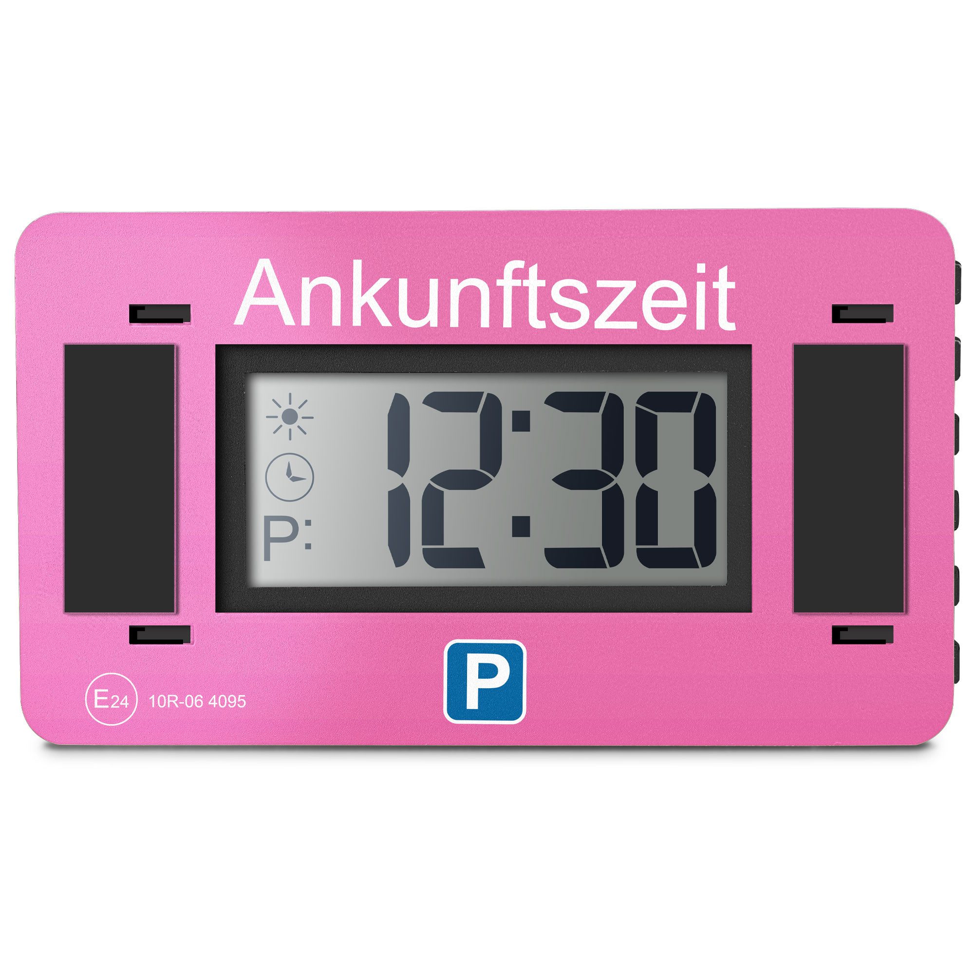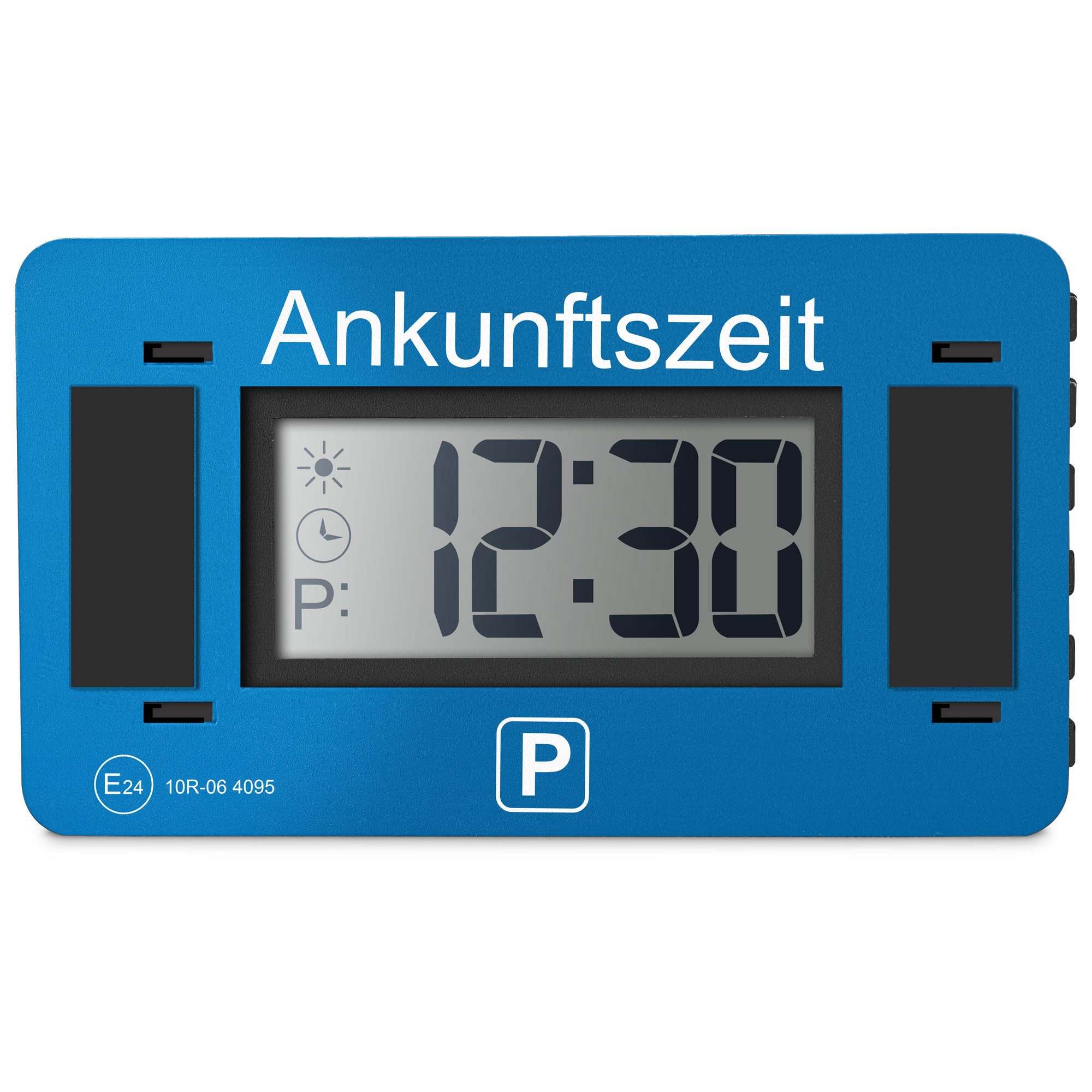 Die digitale Parkscheibe Parkwächter V2 stellt die Ankunftszeit automatisch ein, sobald das Fahrzeug parkt. Setzt sich das Fahrzeug wieder in Bewegung, wird der Parkmodus beendet und das Display schaltet sich aus. Die in Deutschland entwickelte digitale Parkuhr entspricht den Bestimmungen der Straßenverkehrsordnung (ECE Typengenehmigungsnummer E24 10R - 06 4095 ). Die elektromagnetische Verträglichkeit mit Kraftfahrzeugen ist nach Richtlinie 72/245/EWG bestätigt. Die Datenschutz-Funktion der elektronischen Parkscheibe ist bei Werkseinstellung aktiviert. Das Display wird nach 4 Stunden deaktiviert und die Ankunftszeit kann nicht mehr abgelesen werden, wenn das Fahrzeug länger parkt. Bei Deaktivierung wird die Ankunftszeit angezeigt und ist dauerhaft abzulesen. Durch die zwei 3M Klebepads und dem Rahmen ist die digitale Parkuhr mittels Haltemechanismus abnehmbar. So lassen sich bei Bedarf Einstellungen am Gerät benutzerfreundlich vornehmen. Bei schwachem Batteriestatus gibt die elektronische Parkuhr Rückmeldung. Der Parkwächter ist länderübergreifend z.B. für Dänemark (15 Min.) oder Frankreich (10 Min.) einsetzbar. Die Taktung lässt sich einfach und bequem mit einem Handgriff umschalten. Im standardmäßigen Werkszustand ist sie für Deutschland (30 Min.) eingestellt.