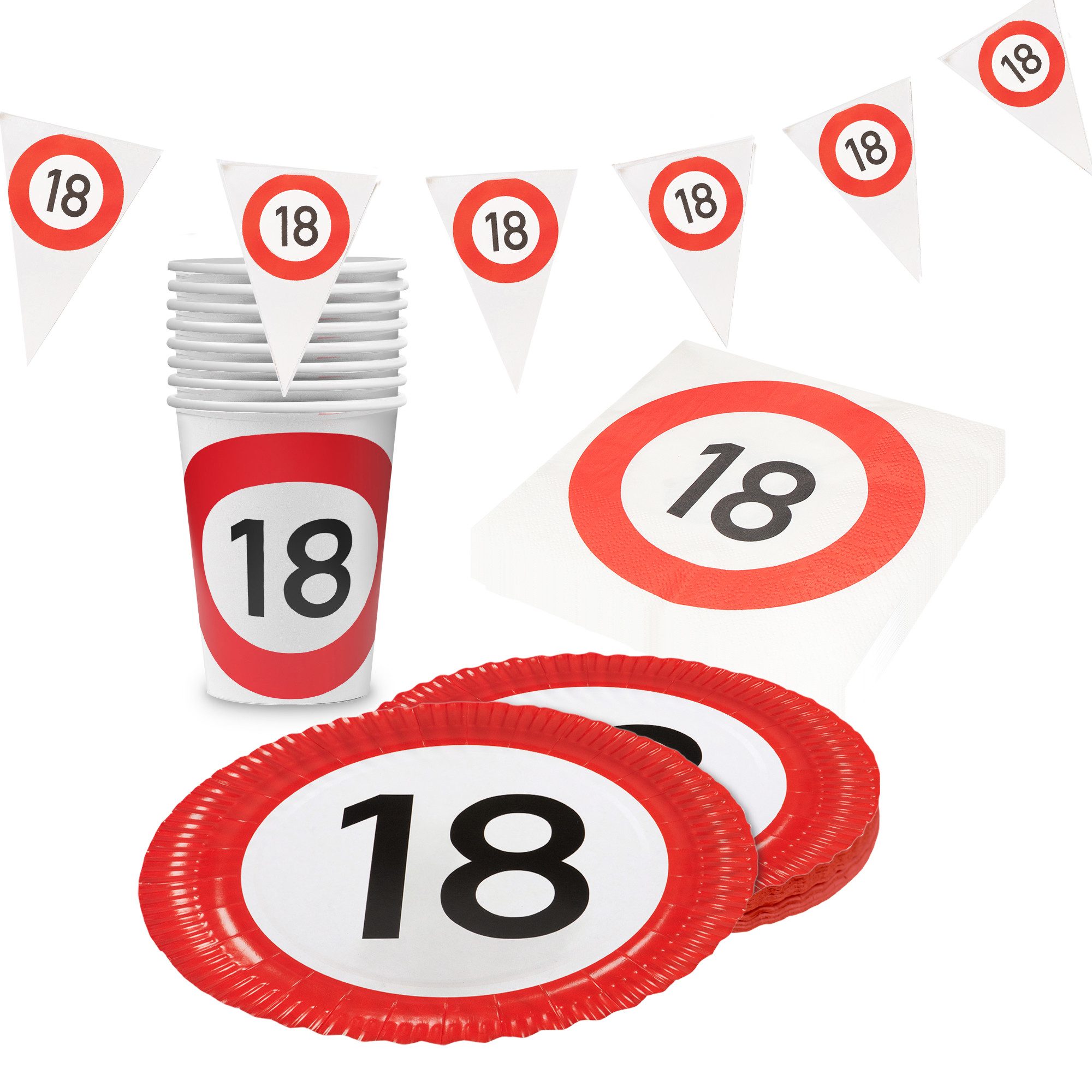 Du planst eine unvergessliche Feier zum 18. Geburtstag? Dann ist dieses Partyset genau das Richtige! Das 4-teilige Set enthält alles, was du für eine gelungene Deko brauchst: Pappteller, Pappbecher, Servietten und eine Wimpelkette – alles im auffälligen Verkehrsschild-Look mit der Zahl 18.
