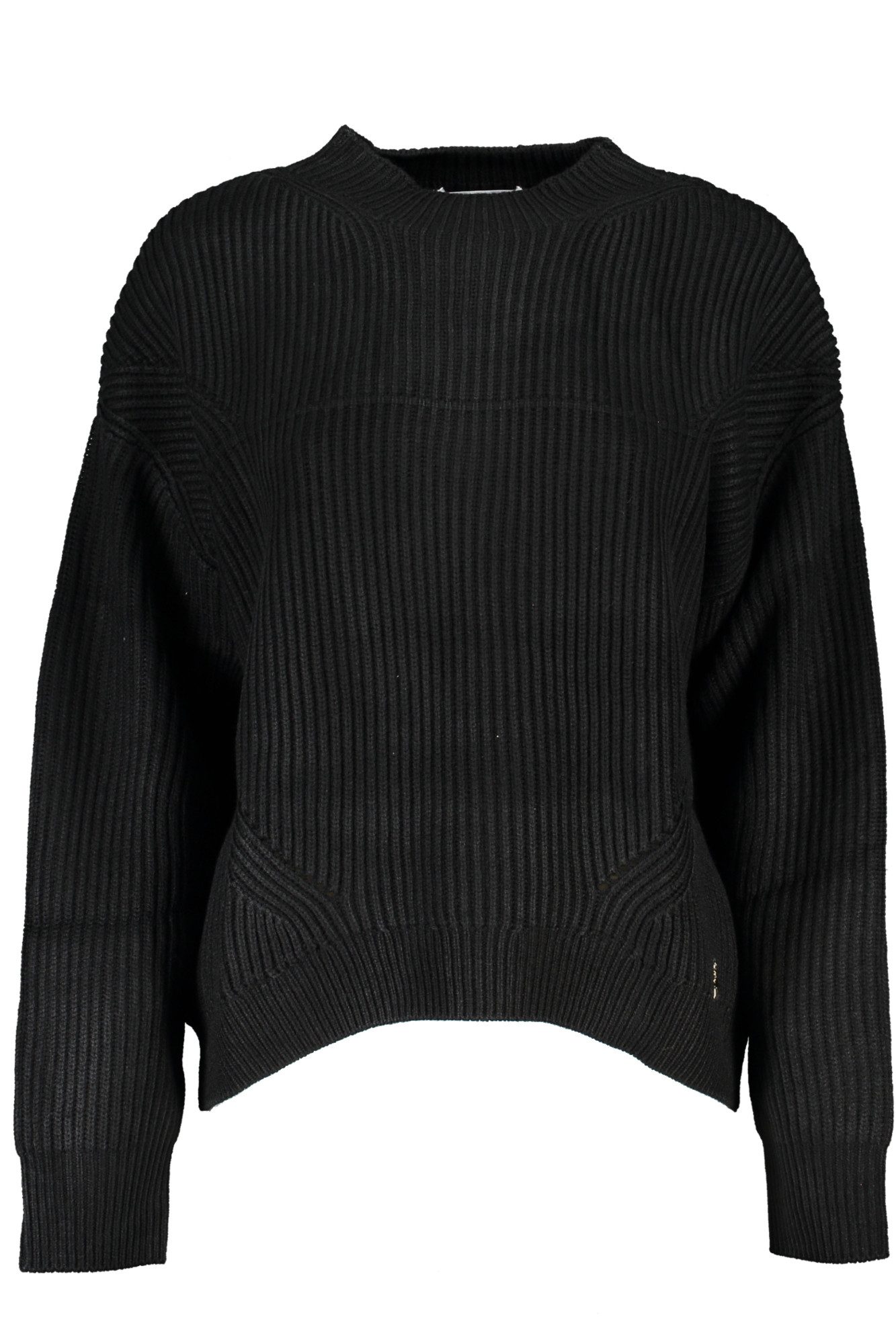Besondere Merkmale | Eleganter Damenpullover Schwarz mit Hohem Kragen und Kontrastdetails |