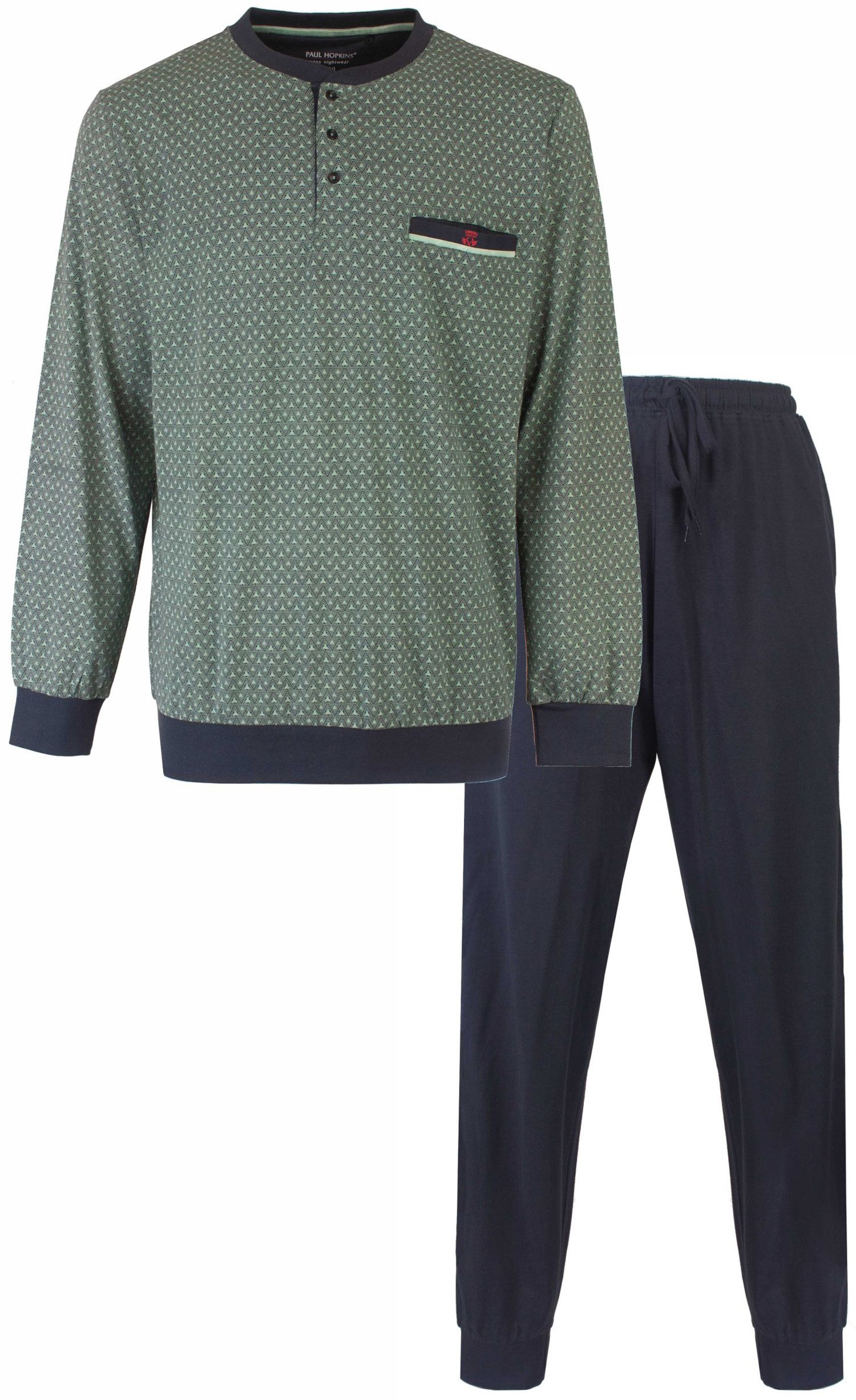 Dieser Paul Hopkins Herren Schlafanzug bietet höchsten Komfort und eine praktische Ausstattung für angenehme Nächte und entspannte Stunden zu Hause. Das langärmelige Oberteil ist mit Bündchen versehen, um einen optimalen Sitz zu gewährleisten. Die lange Hose ist ebenfalls mit Bündchen am Saum ausgestattet, was nicht nur für Bequemlichkeit, sondern auch für eine sichere Passform sorgt. Der Rundhals-Ausschnitt des Schlafanzugs verfügt über eine Knopfleiste. Eine praktische Brusttasche auf der linken Seite des Oberteils bietet nicht nur einen stilvollen Akzent, sondern auch eine praktische Aufbewahrungsmöglichkeit für kleine Gegenstände. Der Bund der Hose ist mit einem Gummizug und einem Tunnelzug ausgestattet, um eine flexible Anpassung an die individuelle Passform zu ermöglichen. Das gesamte Material des Schlafanzugs besteht zu 100% aus Baumwolle, was für eine weiche, atmungsaktive und hautfreundliche Trageerfahrung sorgt. Zusammenfassend bietet dieser Herren Schlafanzug nicht nur Komfort und Funktionalität, sondern auch einen ansprechenden Stil für gemütliche Stunden zu Hause.